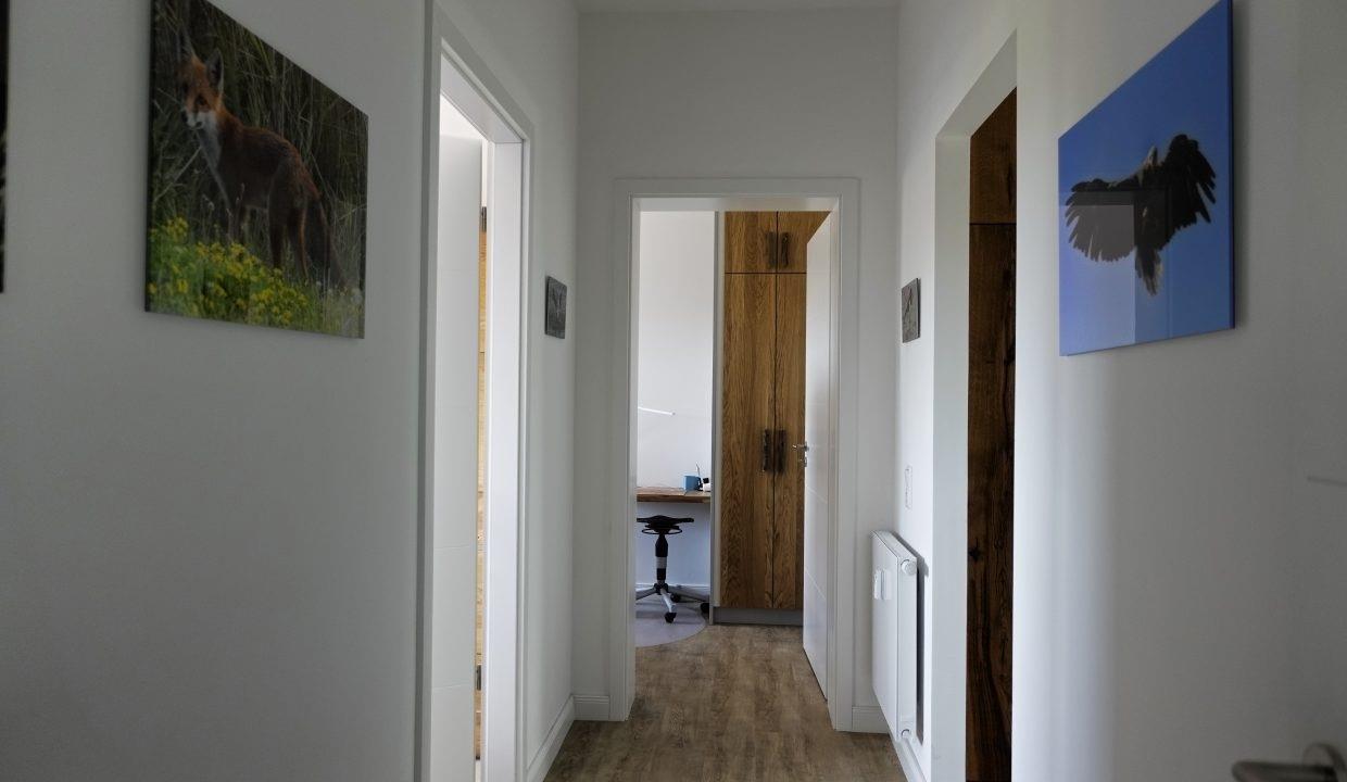 Im Flur befindet sich eine Garderobe sowie ein eingebauter Flurschrank.
