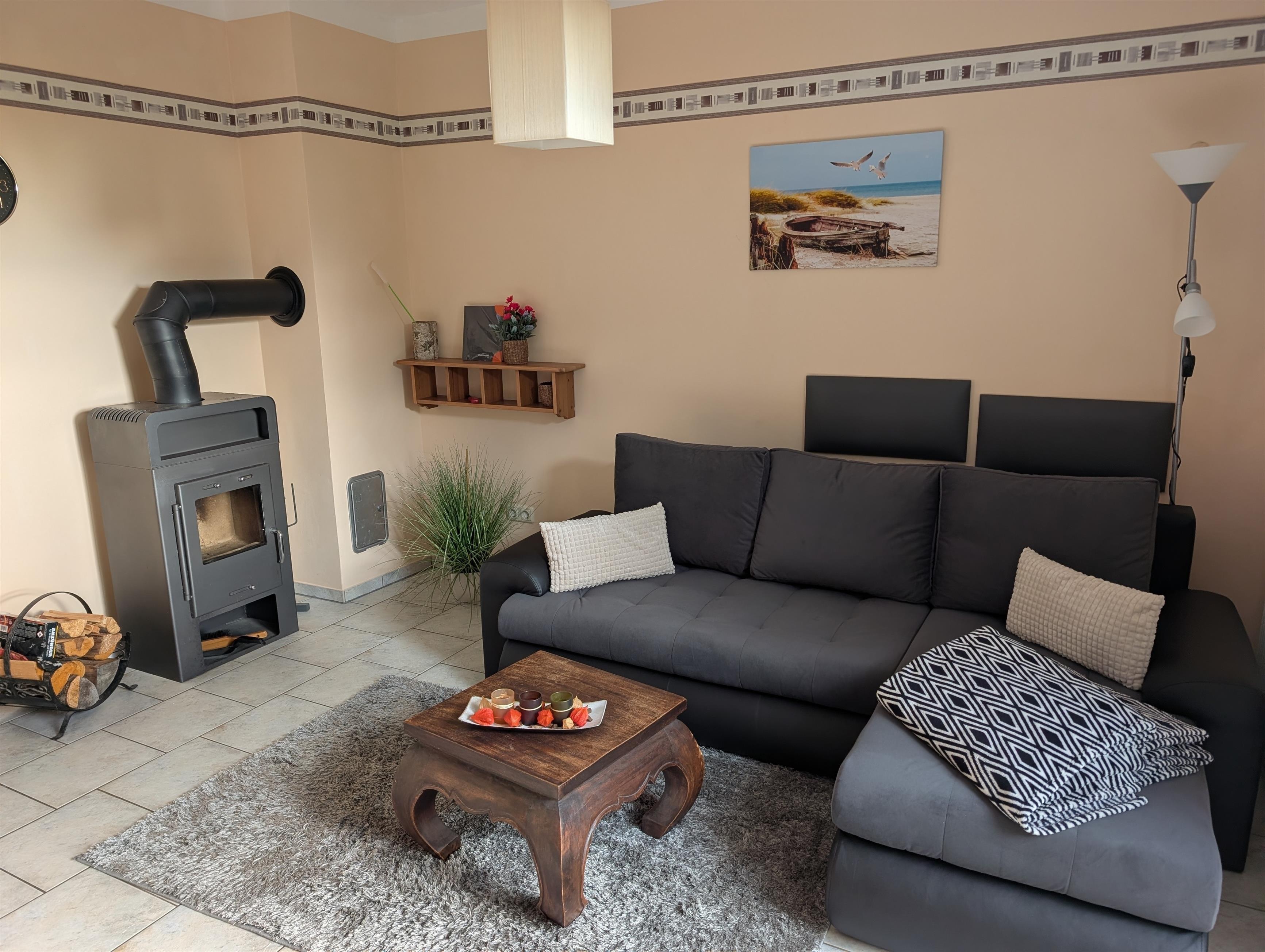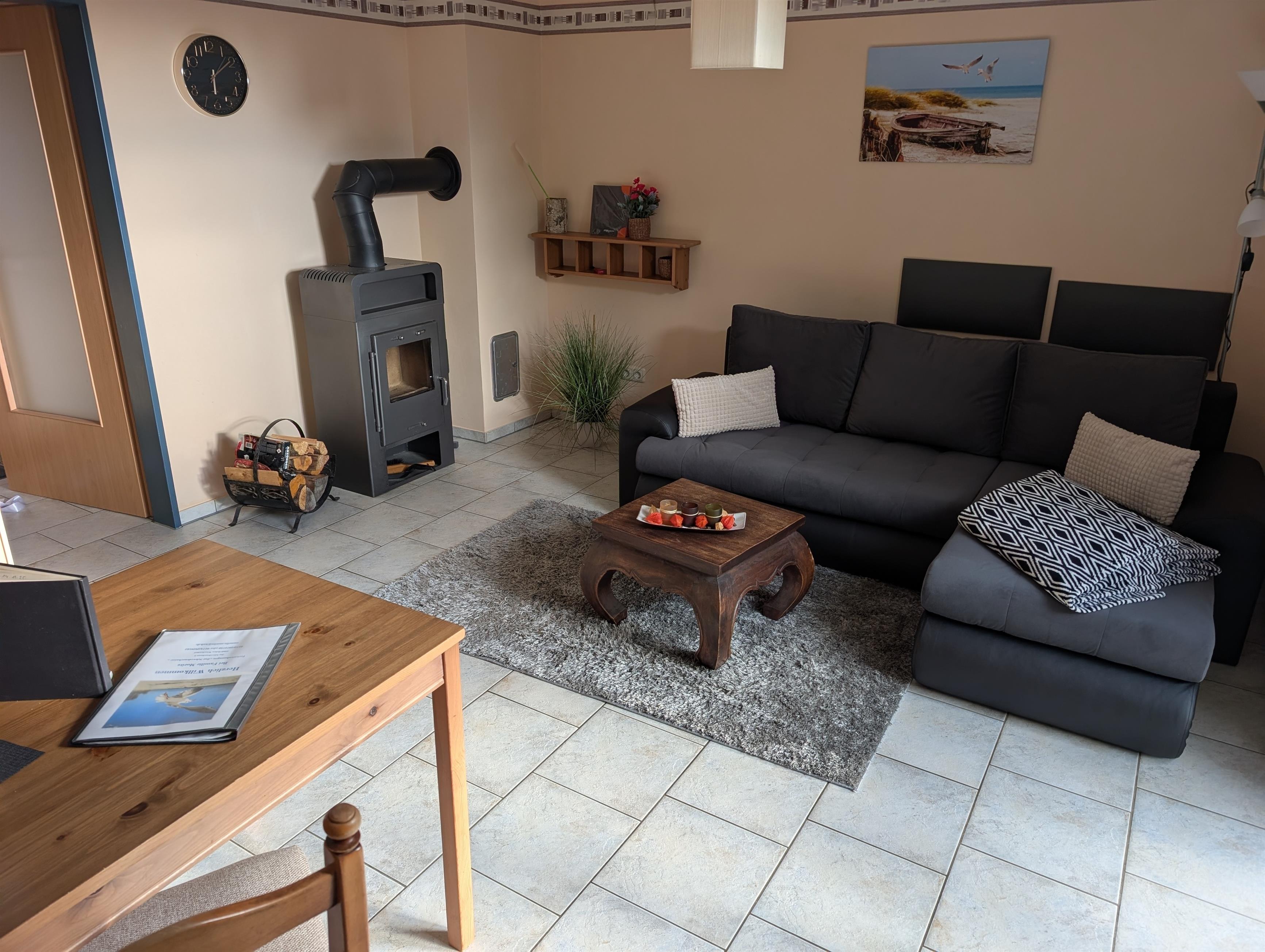Gemütliche Ferienwohnung mit Kamin, Terrasse und Gartenblick auf der Halbinsel Hohen-Wieschendorf.
