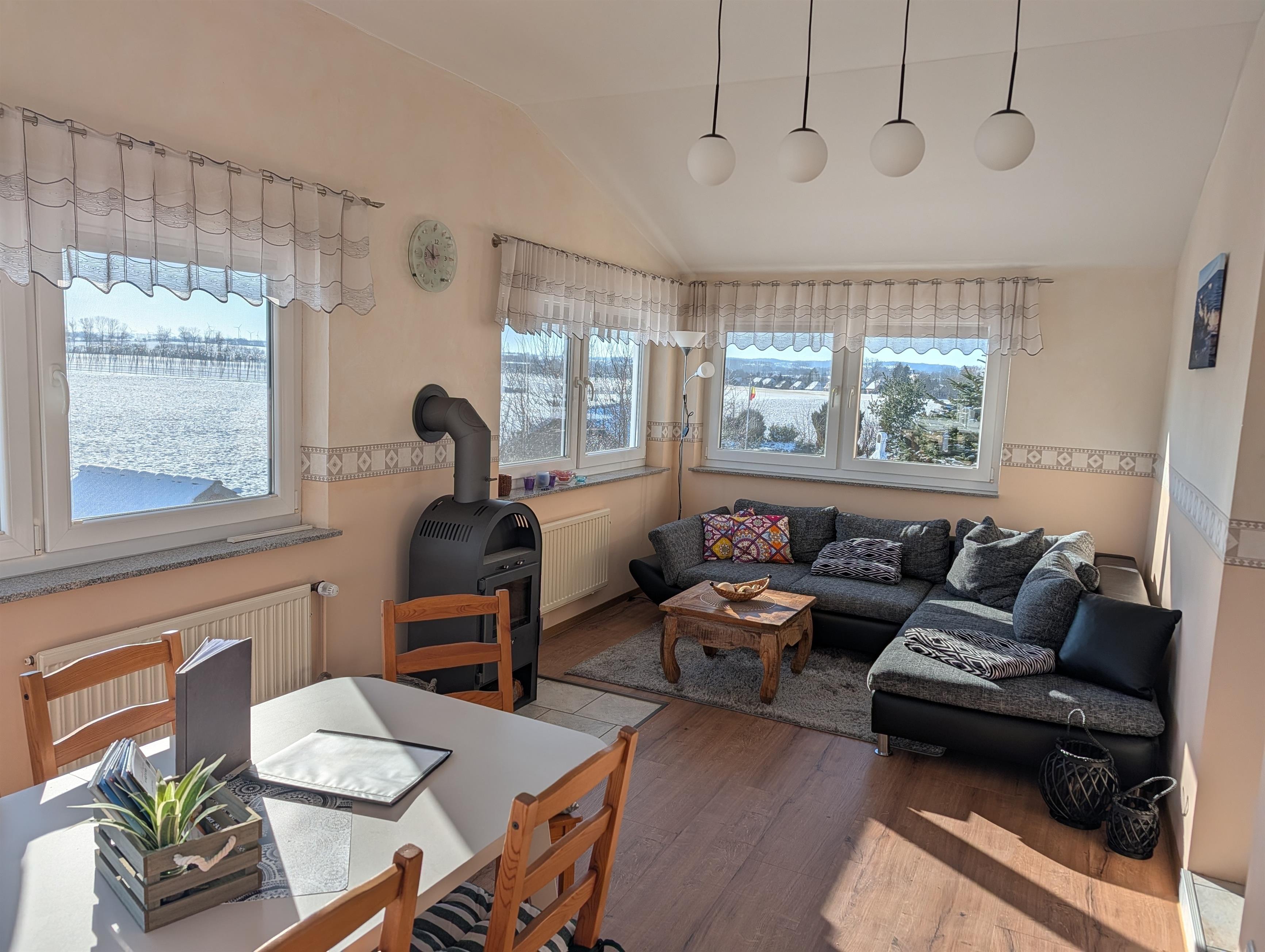 Die Ferienwohnung im ersten Stock ist großzügig geschnitten und komplett ausgestattet mit allem was man für einen gelungenen Urlaub braucht. Das Fewo Starterpaket ist inklusive ( Kücherolle, Toilettenpapier , Spüli, Spülertabs ,Geschirrtücher )