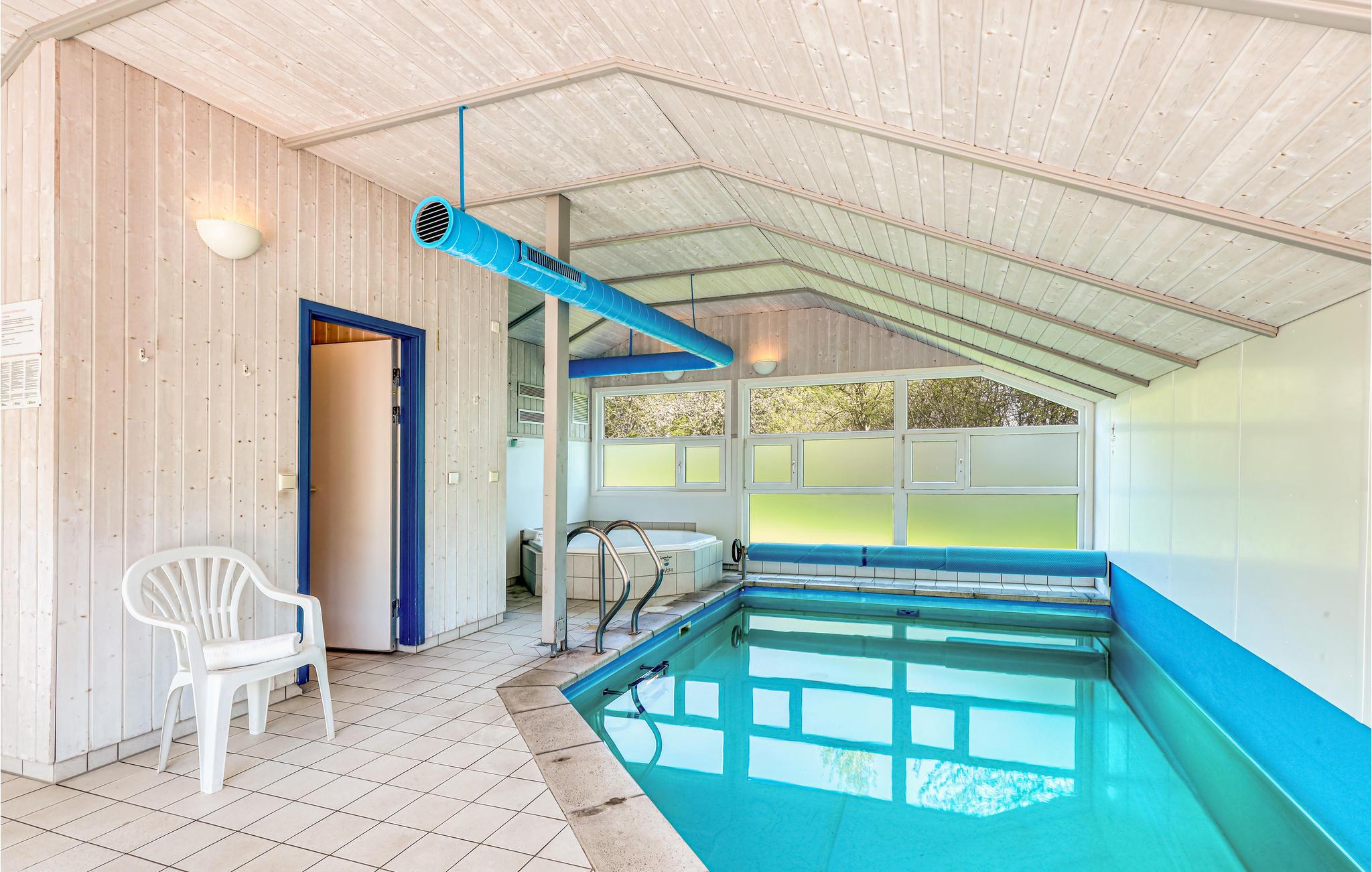 Dieses einladende Ferienhaus mit privatem Schwimmbad ist die Unterkunft, von der Sie geträumt haben. Gemeinsam mit Ihrer Großfamilie oder befreundeten Familien können Sie es sich hier gemütlich machen. Kommen Sie im Wohnbereich zusammen, der von Tageslicht durchflutet wird. Dort lädt ein Kaminofen auch bei kaltem Wetter zu entspannten Stunden vor dem knisternden Feuer ein. Vom Wohnbereich aus können Sie durch eine Glaswand auch das Treiben Ihrer Lieben im Poolraum nebenan beobachten. Der große Pool mit Gegenstromanlage lädt zum Toben und Spielen ein. Direkt nebenan können sich bis zu fünf Personen unter den Massagedüsen des Whirlpools entspannen. Gönnen Sie sich hier einfach mal eine Pause vom Alltag!