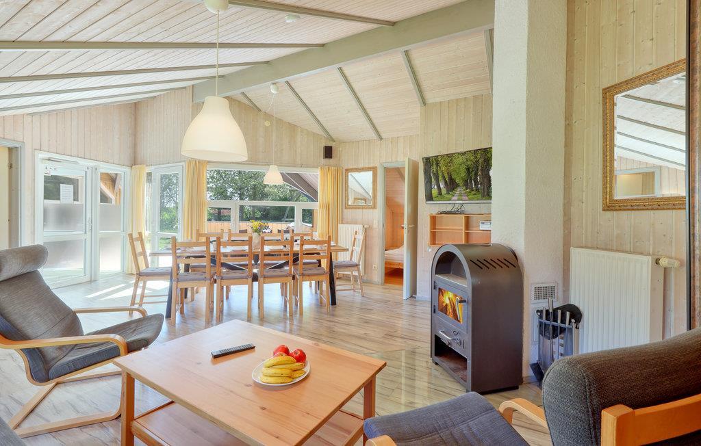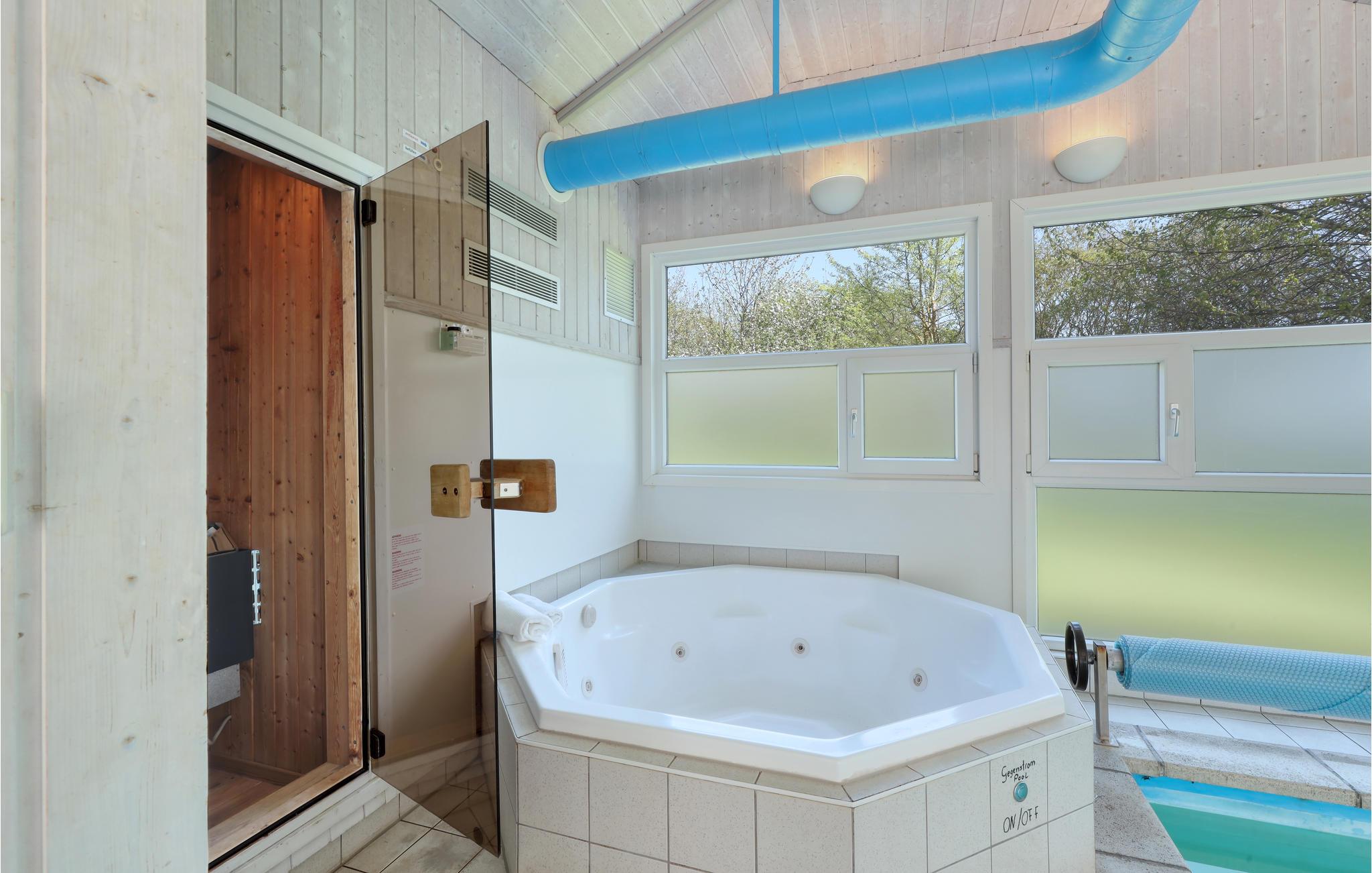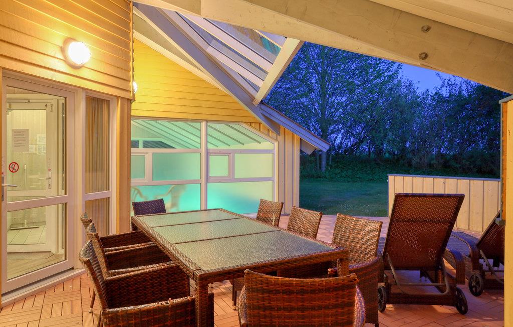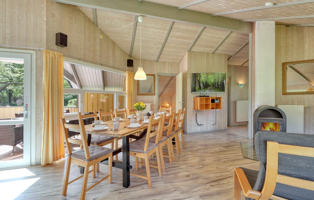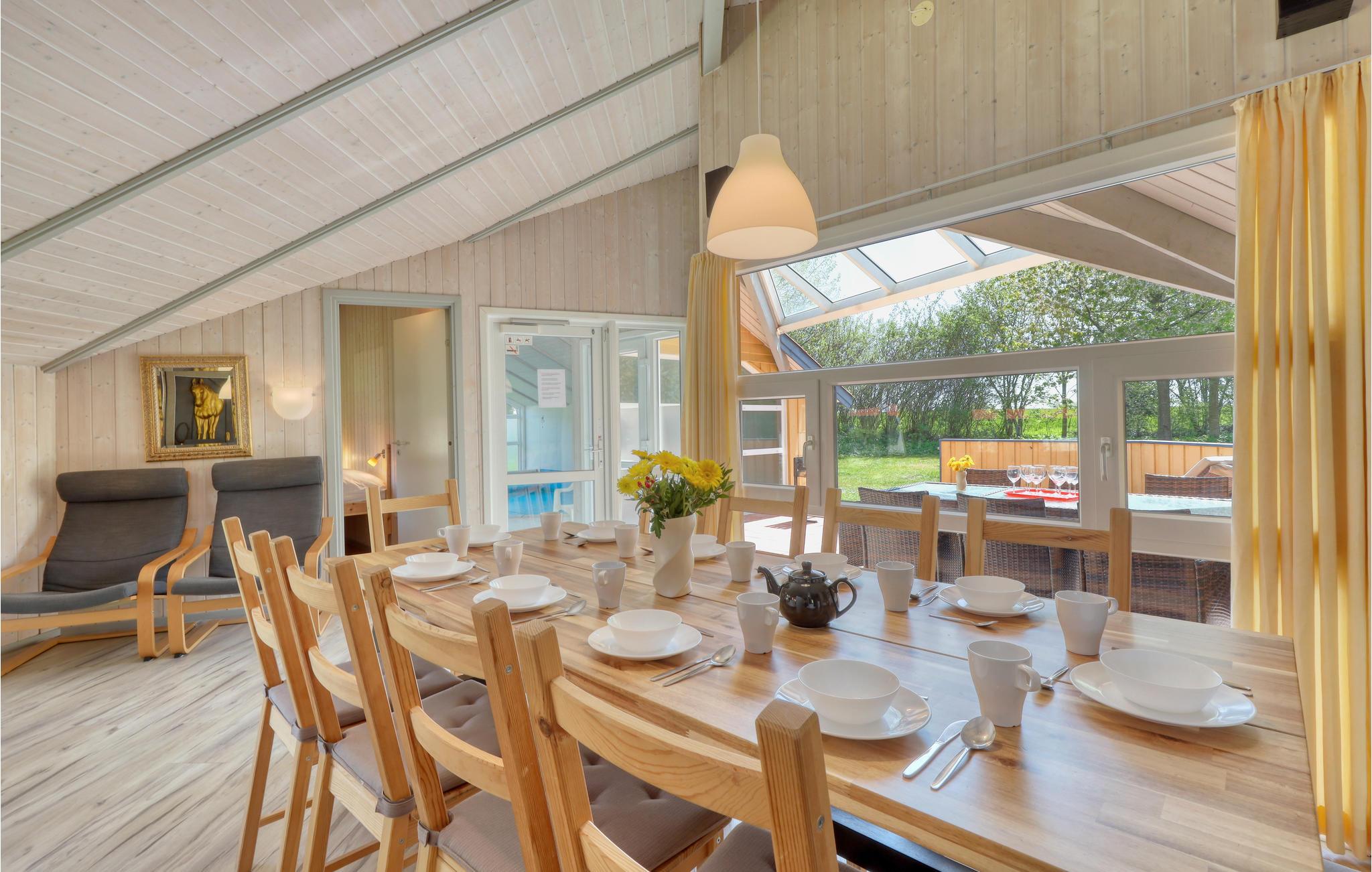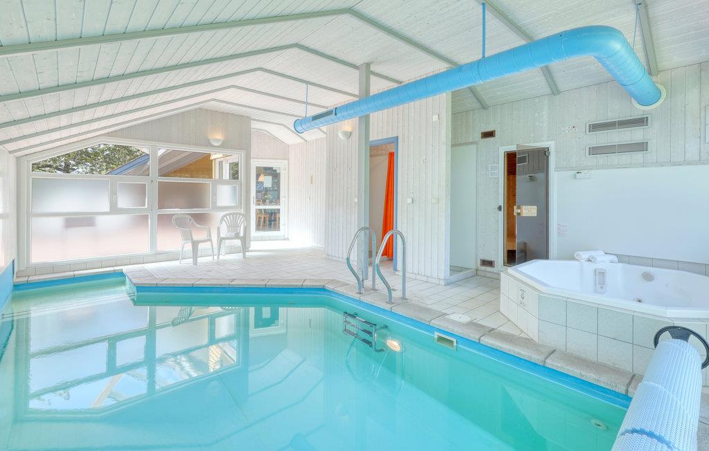 Dieses einladende Ferienhaus mit privatem Schwimmbad ist die Unterkunft, von der Sie geträumt haben. Gemeinsam mit Ihrer Großfamilie oder befreundeten Familien können Sie es sich hier gemütlich machen. Kommen Sie im Wohnbereich zusammen, der von Tageslicht durchflutet wird. Dort lädt ein Kaminofen auch bei kaltem Wetter zu entspannten Stunden vor dem knisternden Feuer ein. Vom Wohnbereich aus können Sie durch eine Glaswand auch das Treiben Ihrer Lieben im Poolraum nebenan beobachten. Der große Pool mit Gegenstromanlage lädt zum Toben und Spielen ein. Direkt nebenan können sich bis zu fünf Personen unter den Massagedüsen des Whirlpools entspannen. Gönnen Sie sich hier einfach mal eine Pause vom Alltag!
