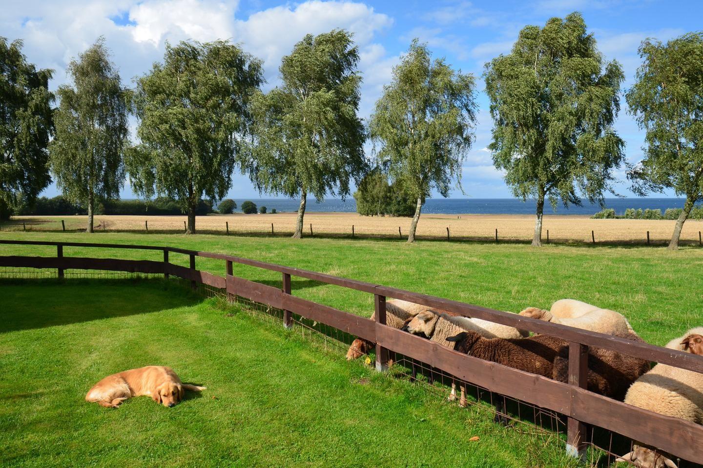 Neben dem Ferienhaus "Meerblick" befindet sich der Archehof der Eigentümer, der natürlich von Tieren (Hühner, Schafe, Katzen, Enten, Hund ... ) bevölkert ist.