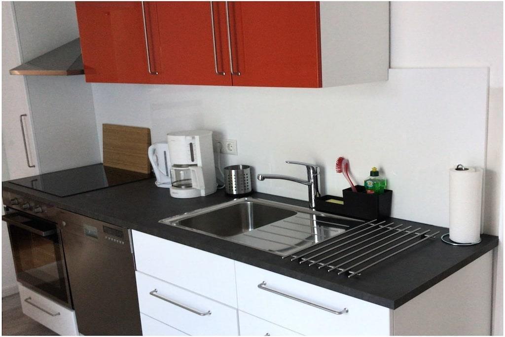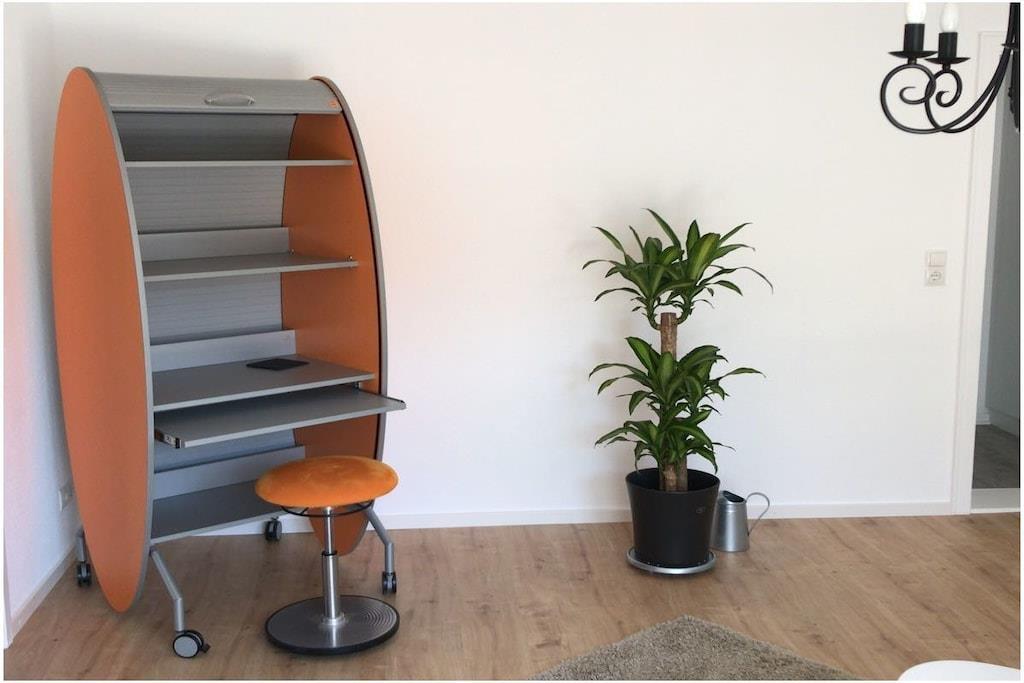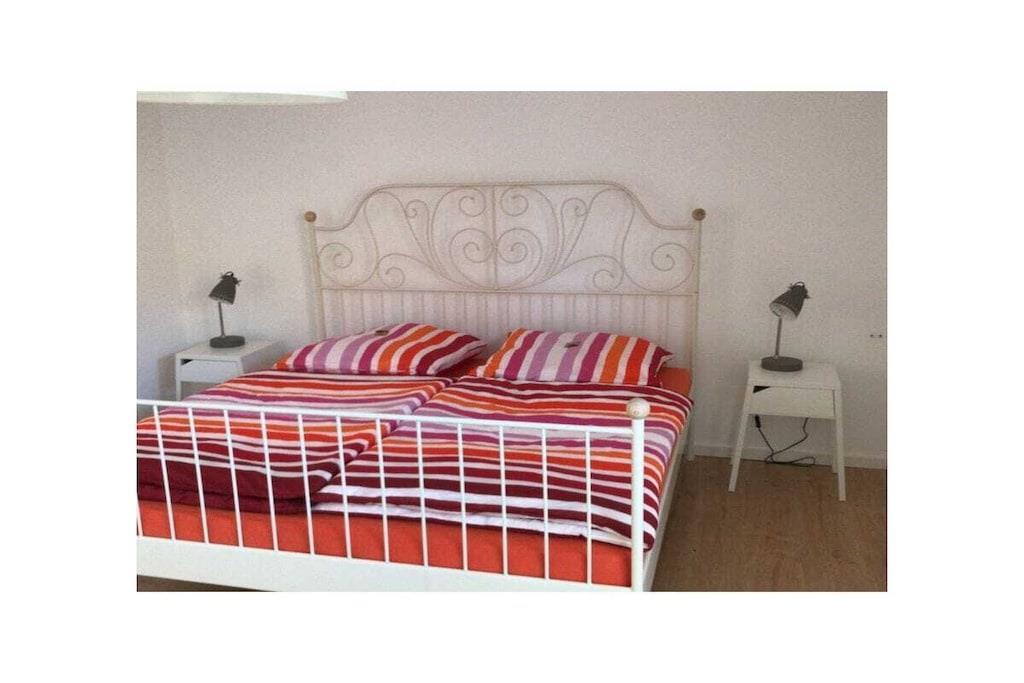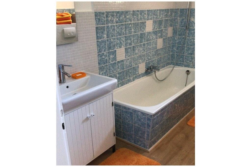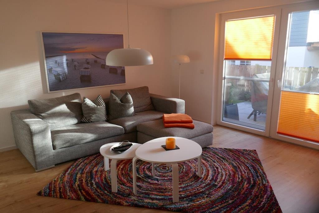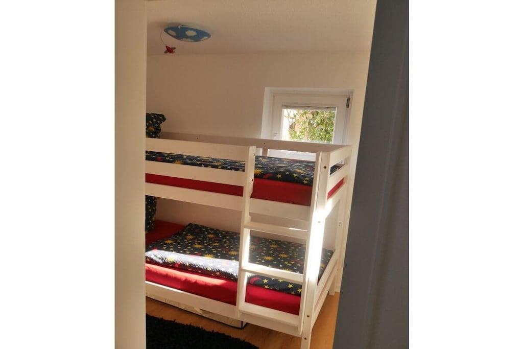 Die Ferienwohnung (ca. 75 qm) befindet sich im Erdgeschoß zur Gartenseite und verfügt über 2 1/2 Zimmer +Küche und Bad Sie bietet viel Platz für 2 Erwachsene und 2 Kinder, Zustellbett und Hochstuhl für ein Kleinkind sind vorhanden. Auf der Südterrasse lässt sich morgens gemütlich frühstücken oder abends lecker grillen. Fahrräder lassen sich bei Bedarf gut unterstellen. In der Wohnung gibt es ein geräumiges Wohnzimmer, ein Eltern- und kleines Kinderschlafzimmer mit Etagenbett sowie eine gut ausgestattete Küche mit Essplatz für 4 Personen. Im Bad befindet sich eine Badewanne. Durch einen geschlossenen Eingangsvorbau mit Garderobe und Schuhablage bleibt die Wohnung sauber und trocken .