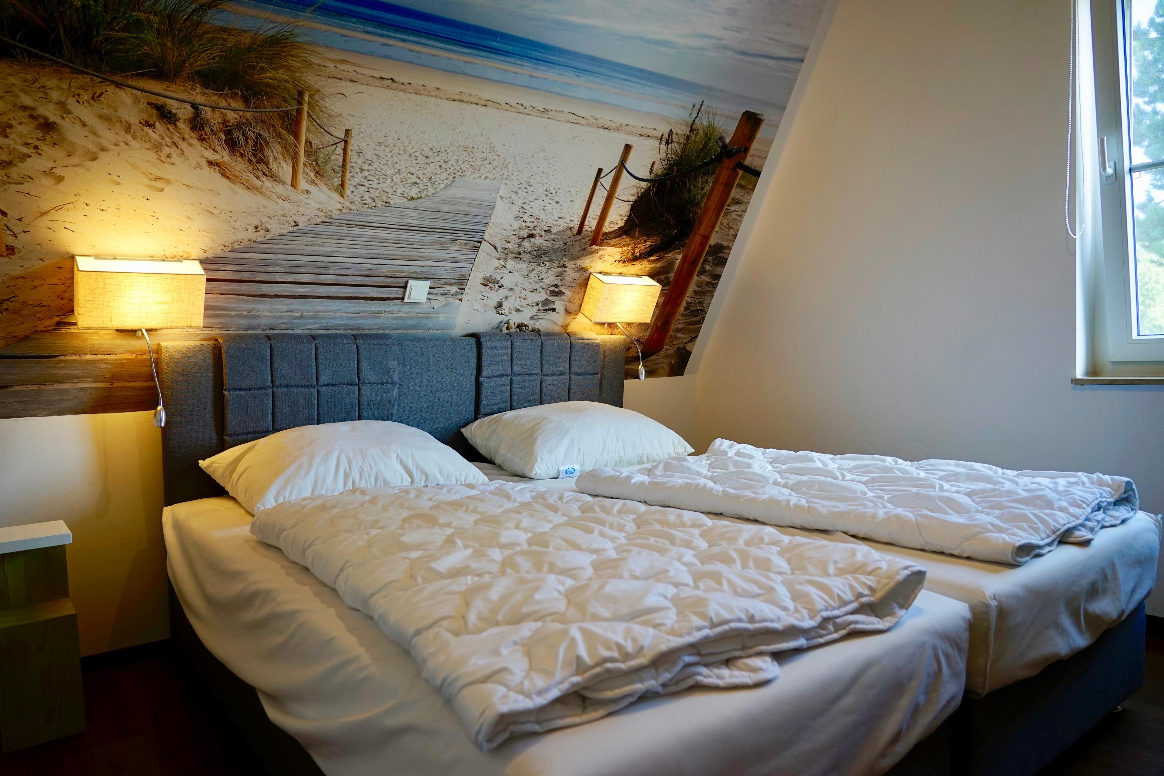 Für Unterhaltung sorgt ein Flat-TV mit Soundbar und Radio im Wohnbereich, während im Obergeschoss ein zusätzlicher Fernseher im Schlafzimmer bereitsteht. Die beiden Kinderzimmer sind jeweils mit einem großzügigen Einzelbett ausgestattet und bieten genügend Freiraum für die Kleinen.