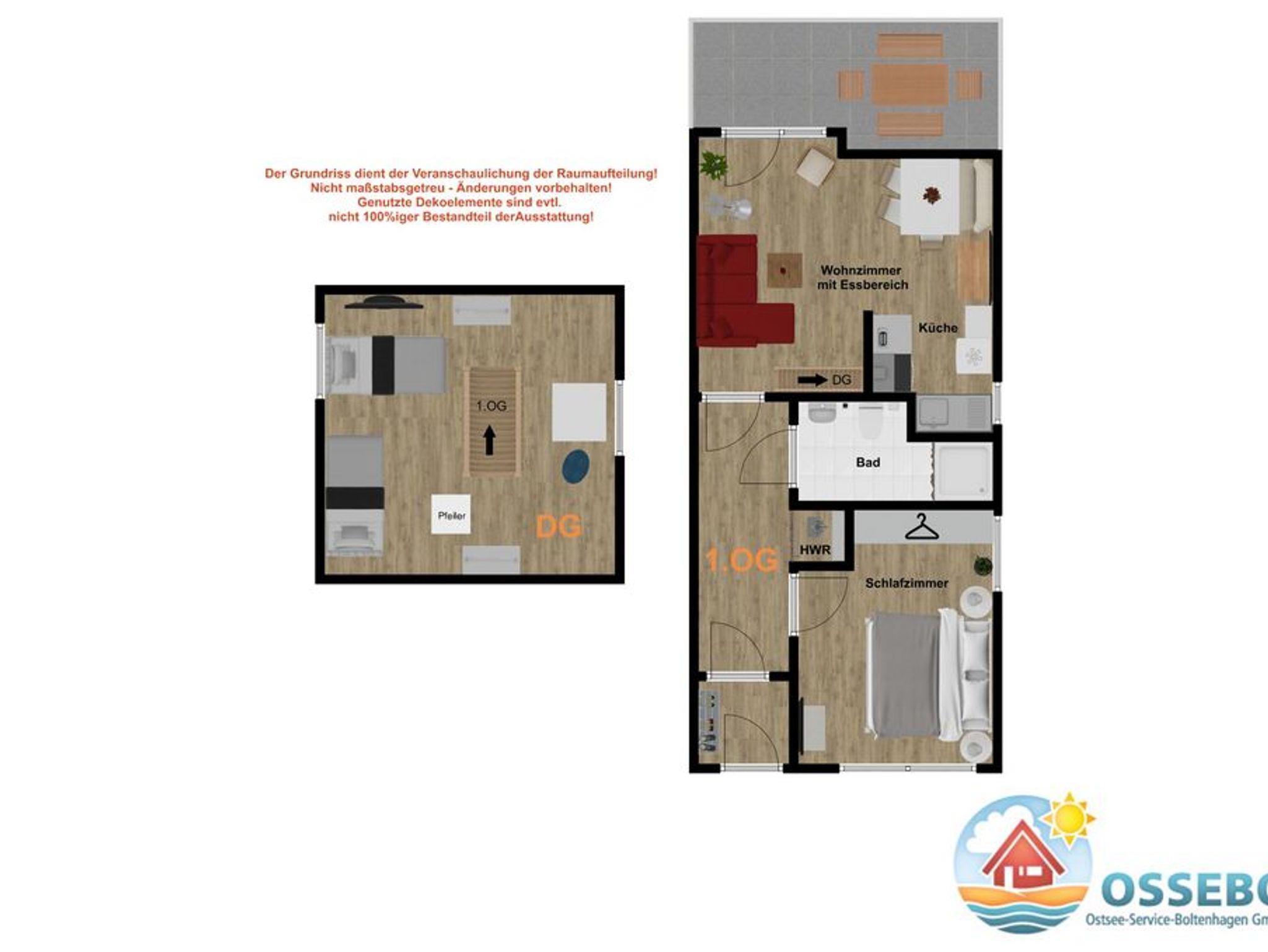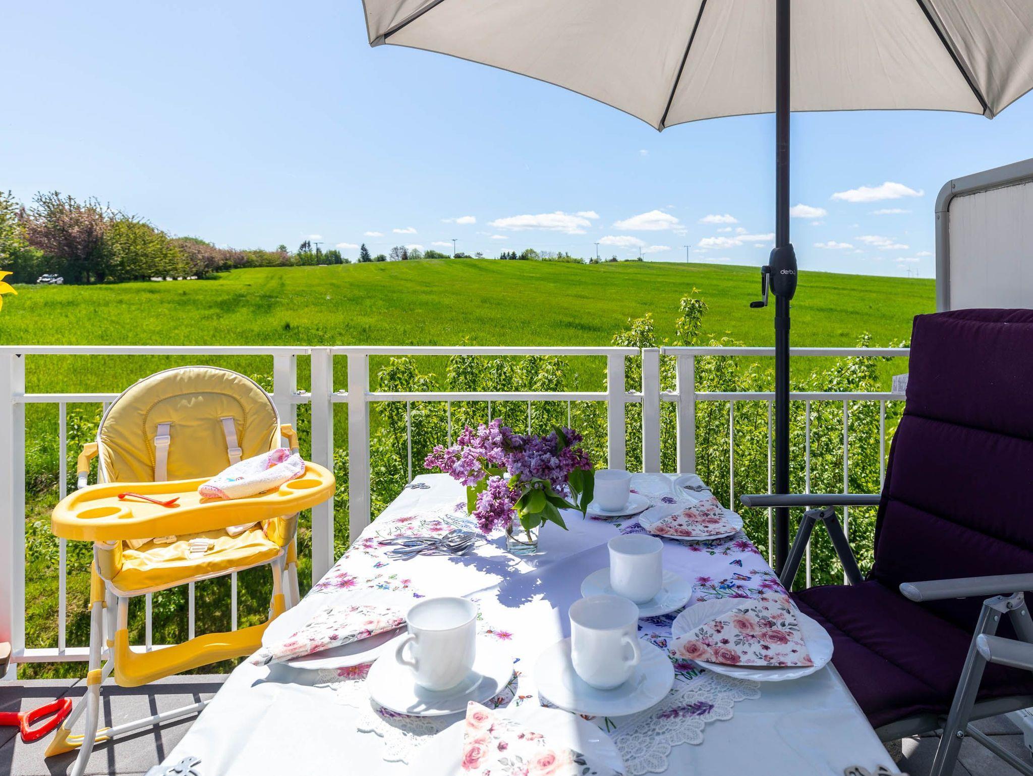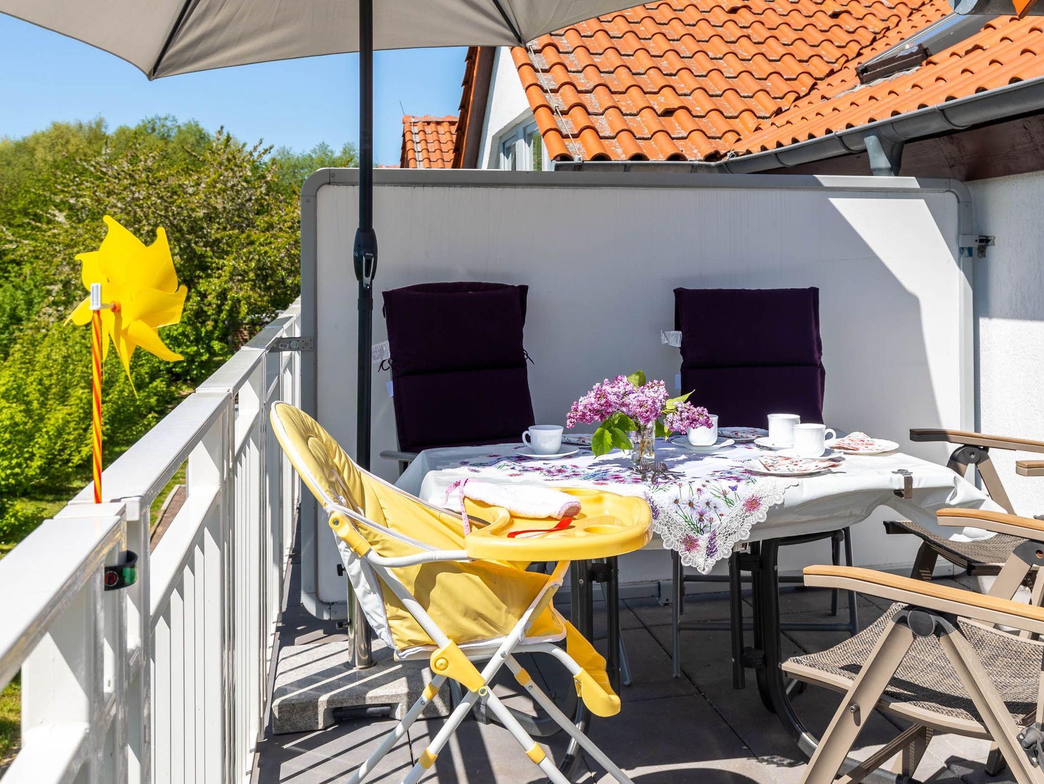 In dieser Nichtraucher-Wohnung stehen für unsere kleinsten Gäste ein Hochstuhl und ein Reisebettchen kostenfrei zur Nutzung bereit. Die Wohnung hat einen eigenen Eingang über den Laubengang mit herrlicher Aussicht zur Ostsee.