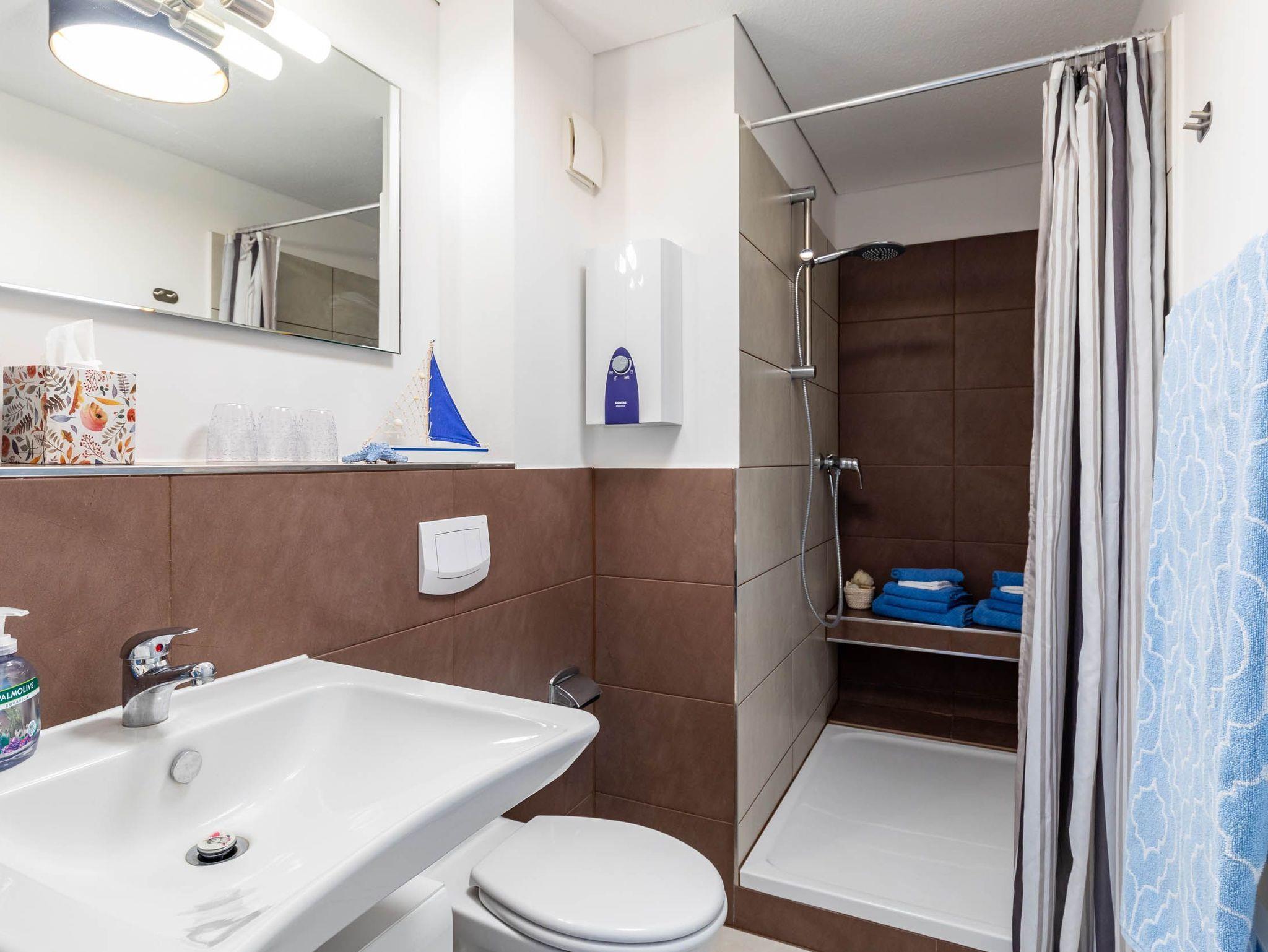 Ebenso befindet sich auf dieser Etage das Bad mit Dusche und WC.