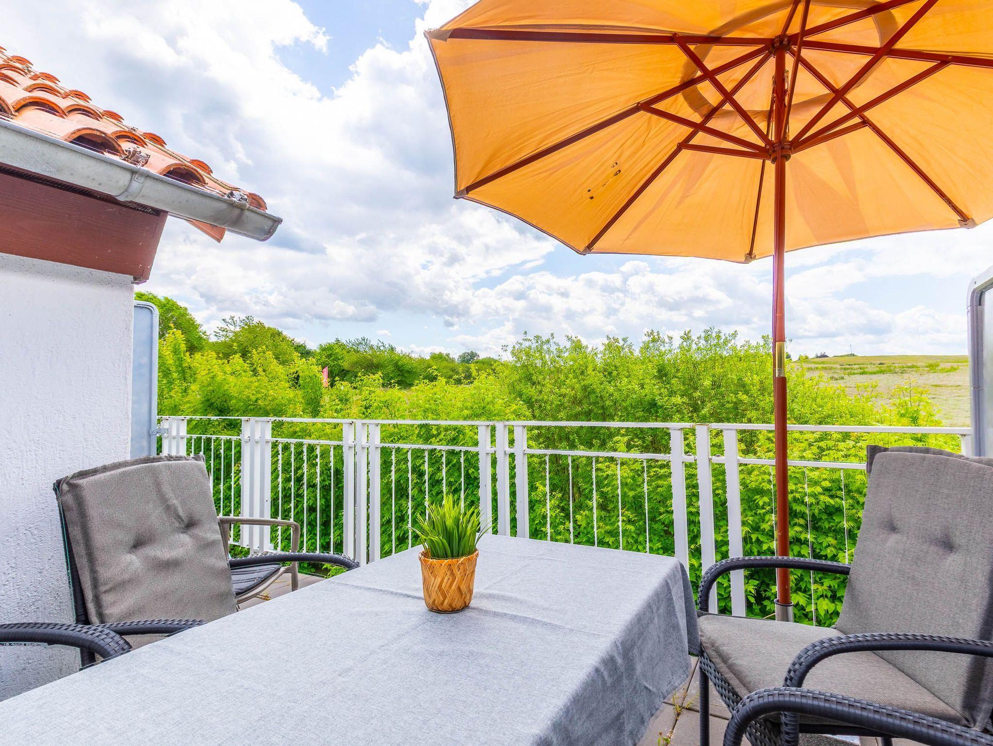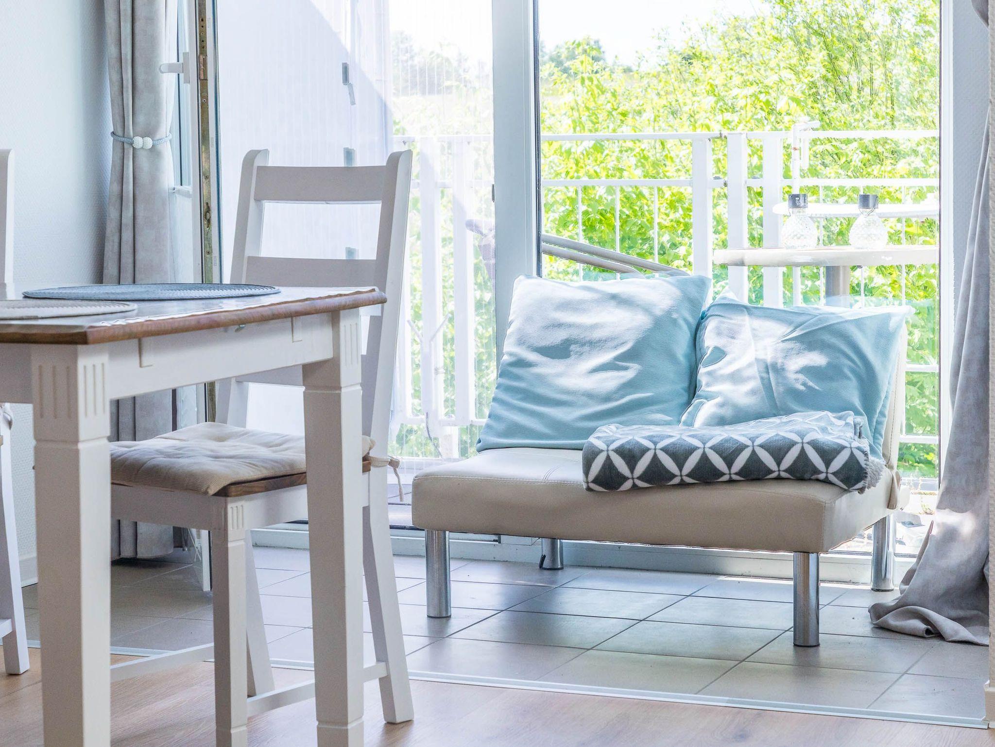 Die Nichtraucher-Wohnung hat einen eigenen Eingang über den Laubengang mit herrlicher Aussicht zur Ostsee.
