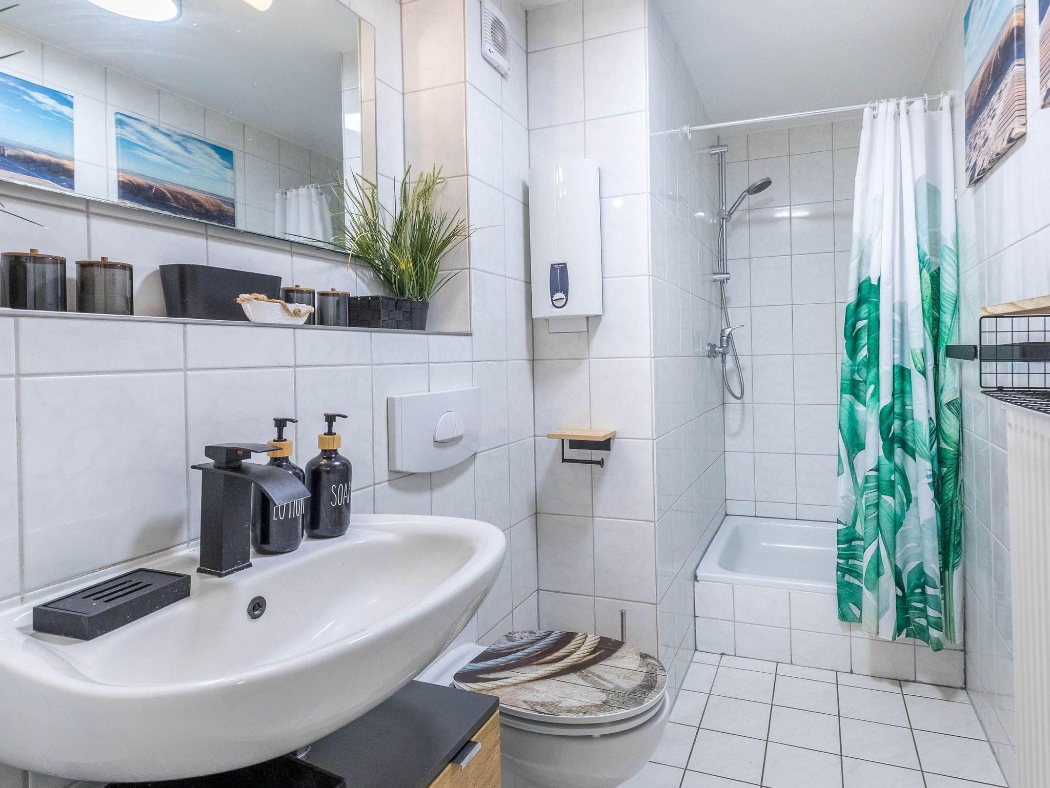Ebenso befindet sich auf dieser Etage das Bad mit Dusche und WC.