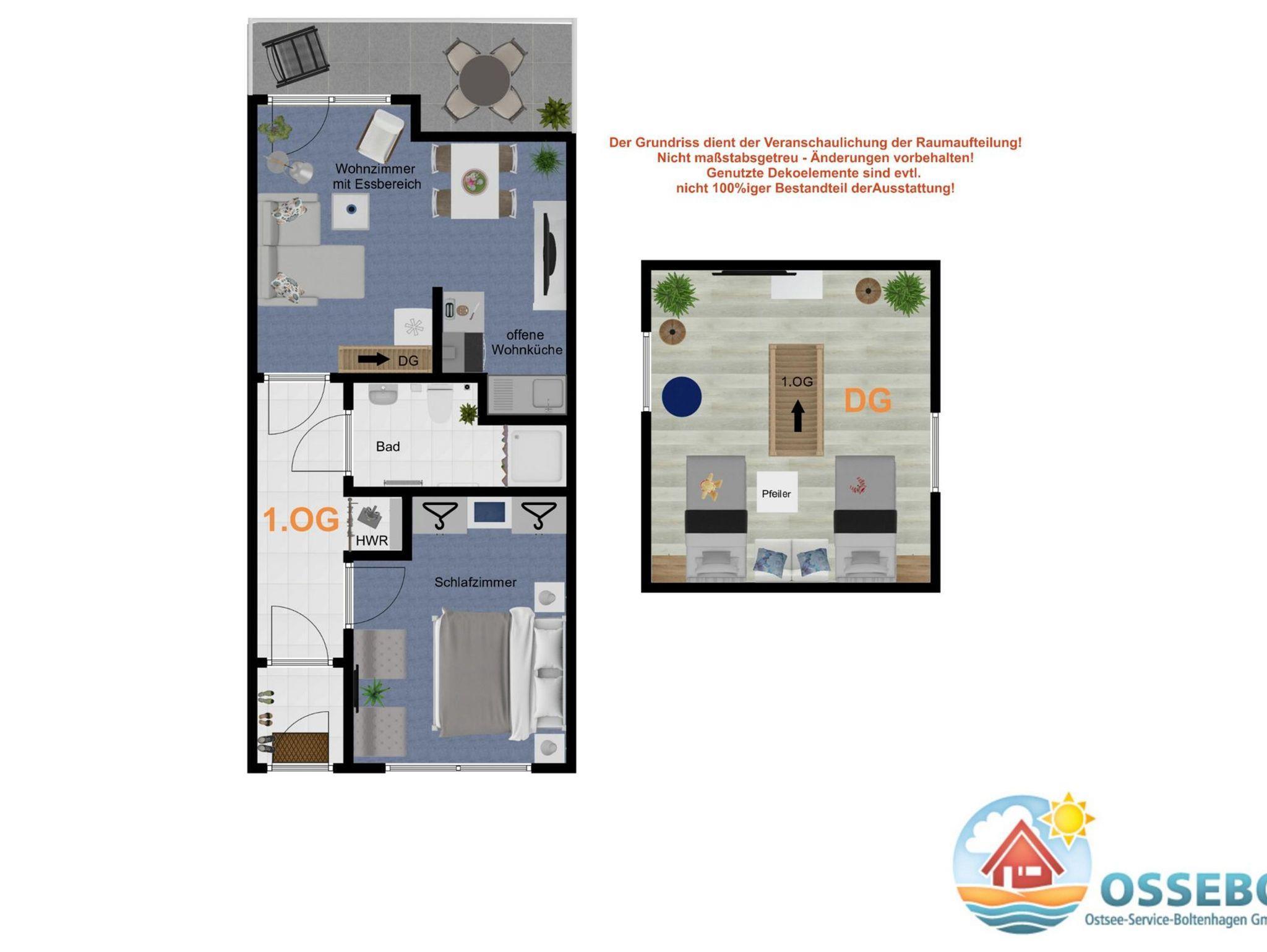 Die familienfreundliche 3-Zimmer-Wohnung im 1.OG erstreckt sich auf 70qm Wohnfläche über 2 Ebenen und bietet eine Ausstattung für max. 2 Erwachsene + 3 Kinder.