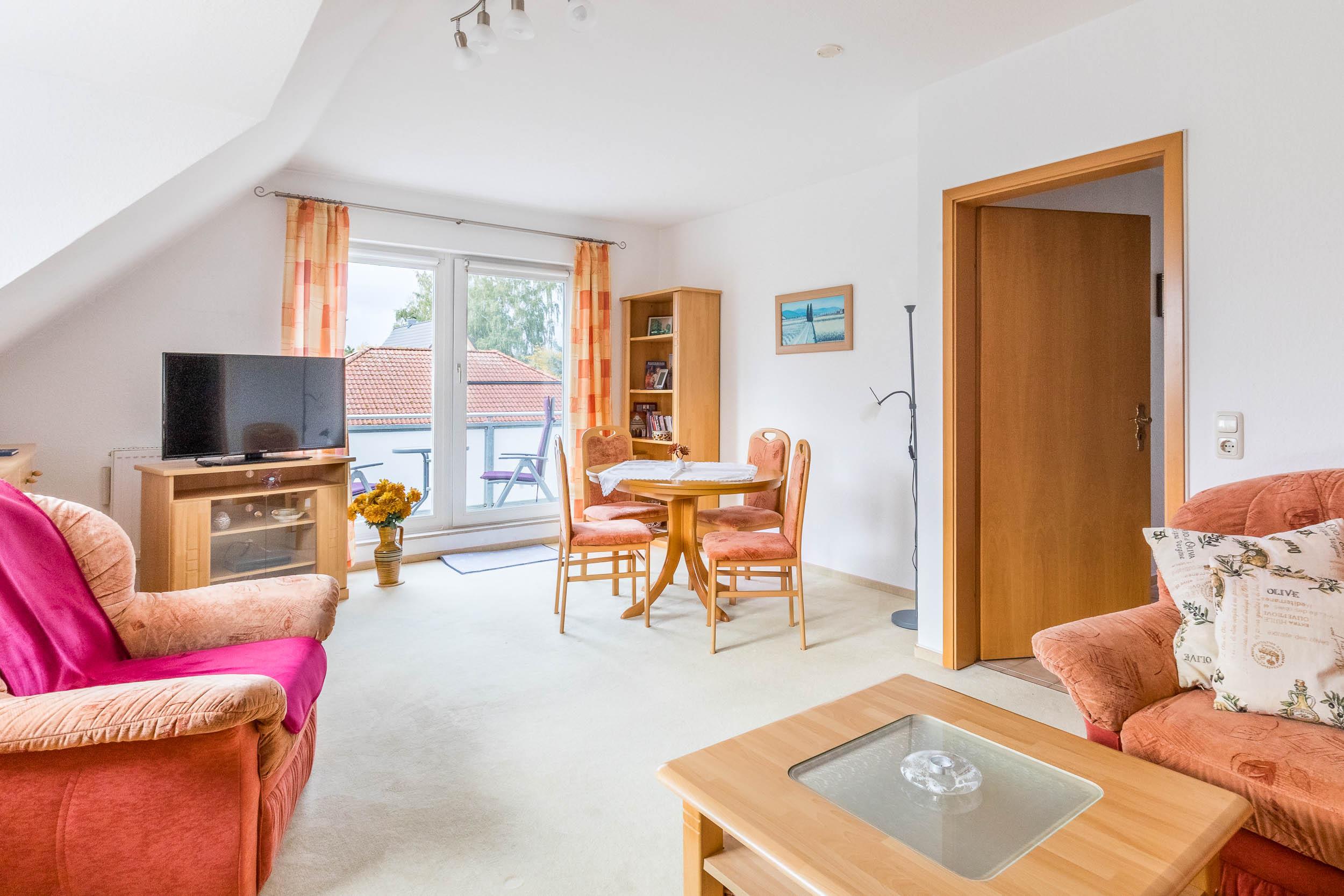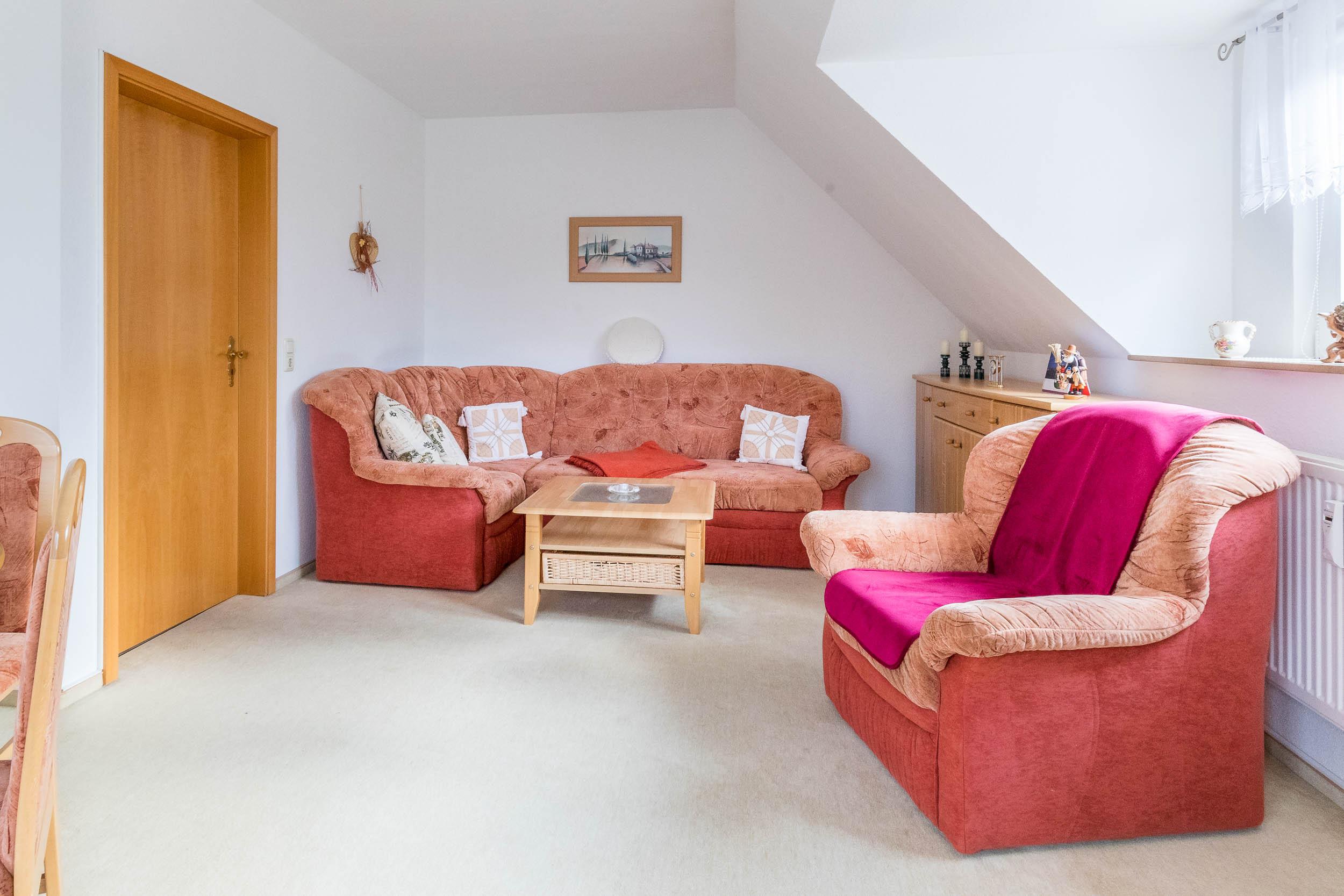 Die 3-Zimmer-Ferienwohnung befindet sich im 1.OG des Hauses und ist über eine Treppe zu erreichen. Sie erstreckt sich über 2 Ebenen und bietet auf etwa 70qm Wohnfläche eine komfortable Ausstattung für bis zu 4 Gäste.