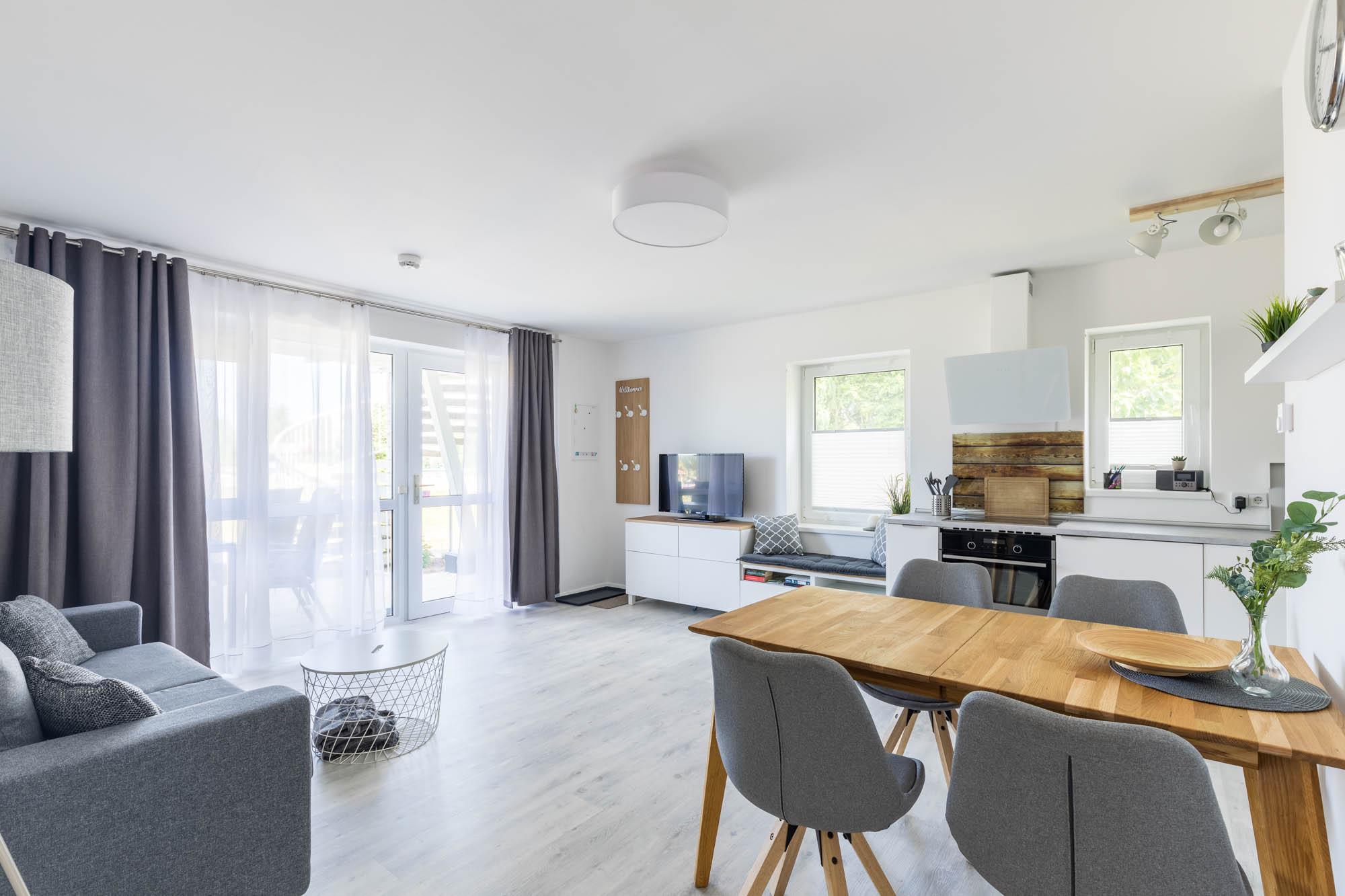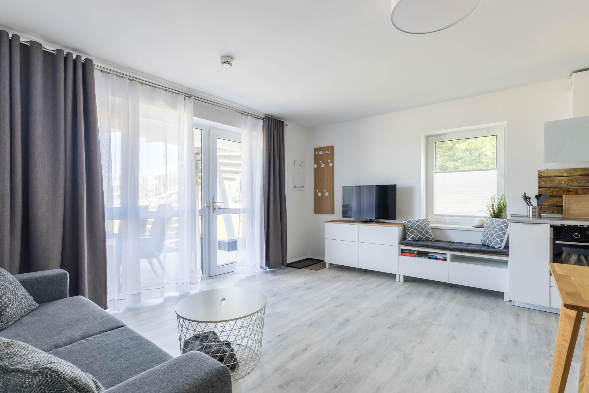 Die moderne 2-Zimmer-Wohnung im Erdgeschoss bietet auf rund 80qm Wohnfläche eine Ausstattung für bis zu 3 Erwachsene + 1 Kind.