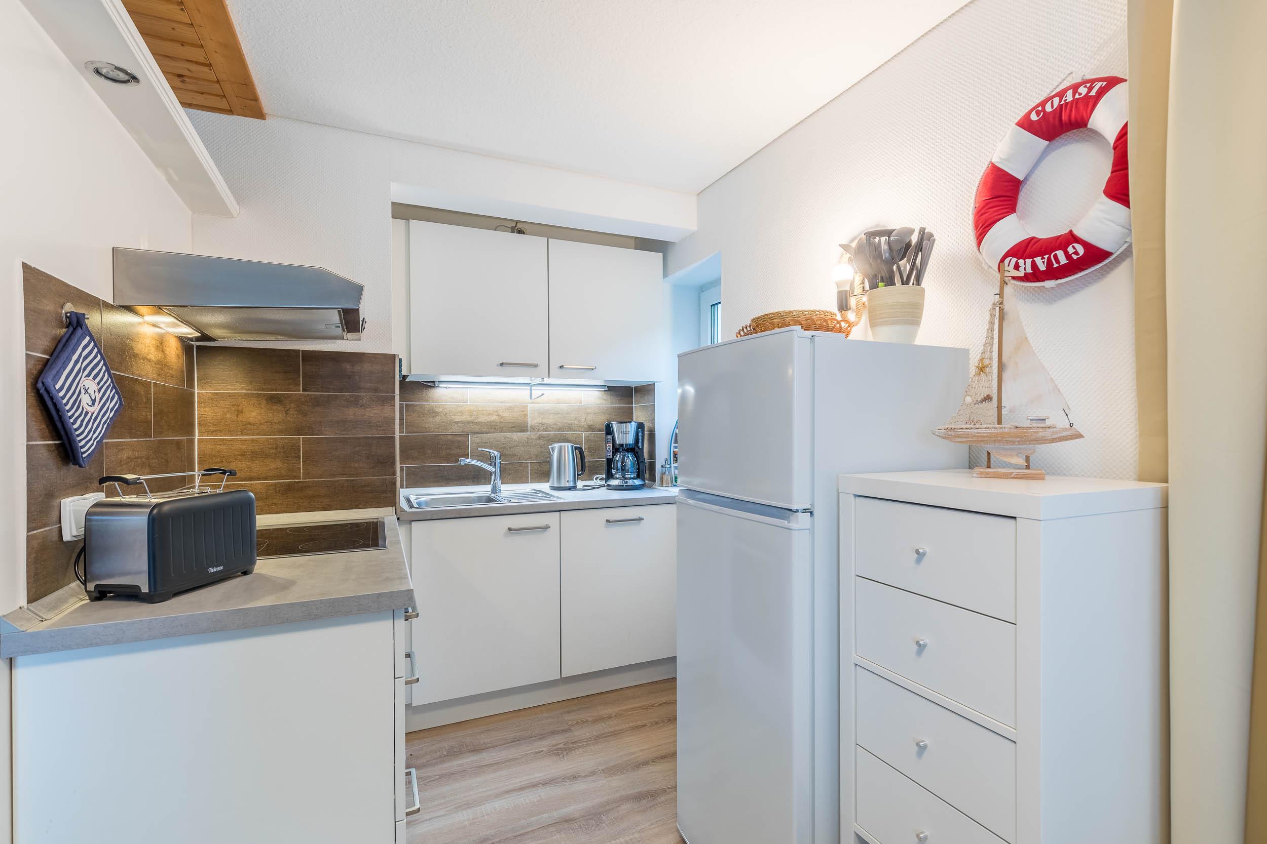 In dieser Nichtraucher-Wohnung steht weiterhin für unsere kleinsten Gäste ein Hochstuhl kostenfrei zur Nutzung bereit. Die Wohnung hat einen eigenen Eingang über den Laubengang mit herrlicher Aussicht zur Ostsee.