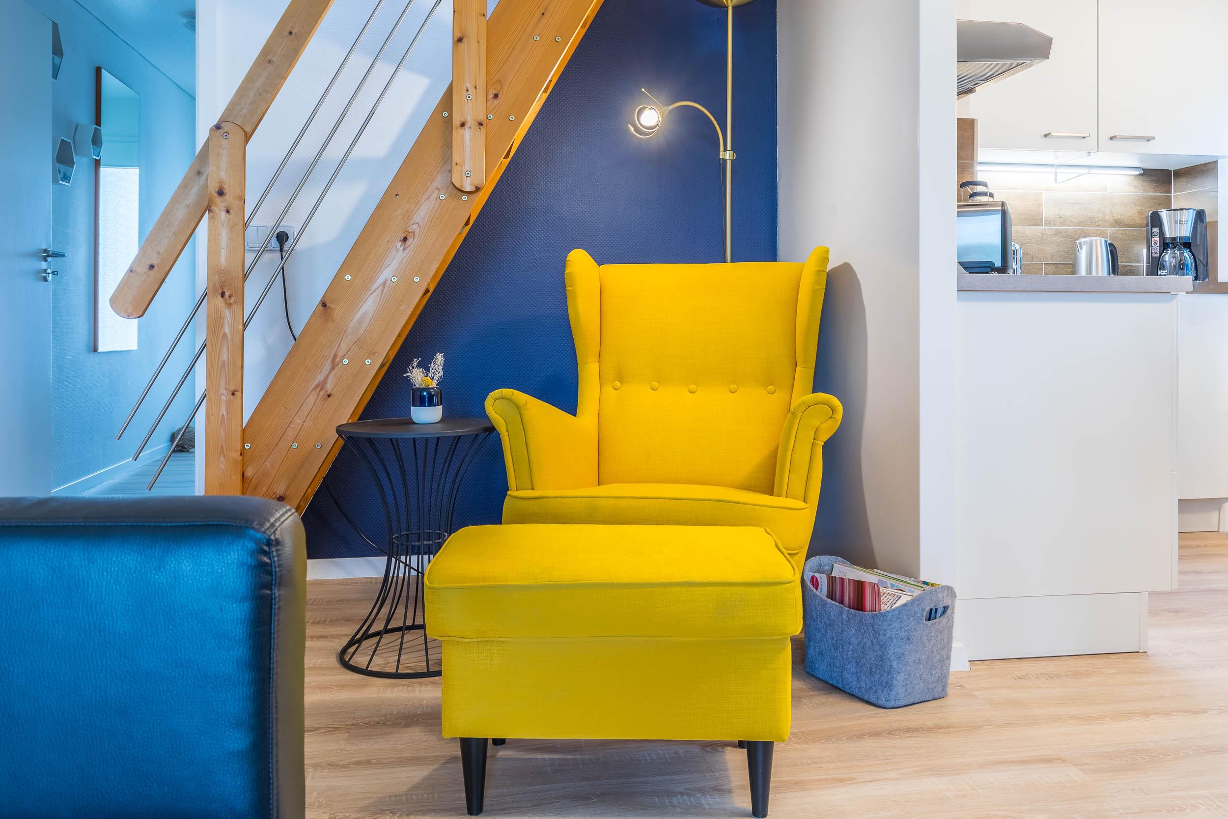 Die familienfreundliche 3-Zimmer-Wohnung im 1.OG erstreckt sich über 2 Ebenen und bietet auf insgesamt rund 70qm Wohnfläche eine Ausstattung für bis zu 5 Gäste.