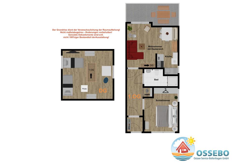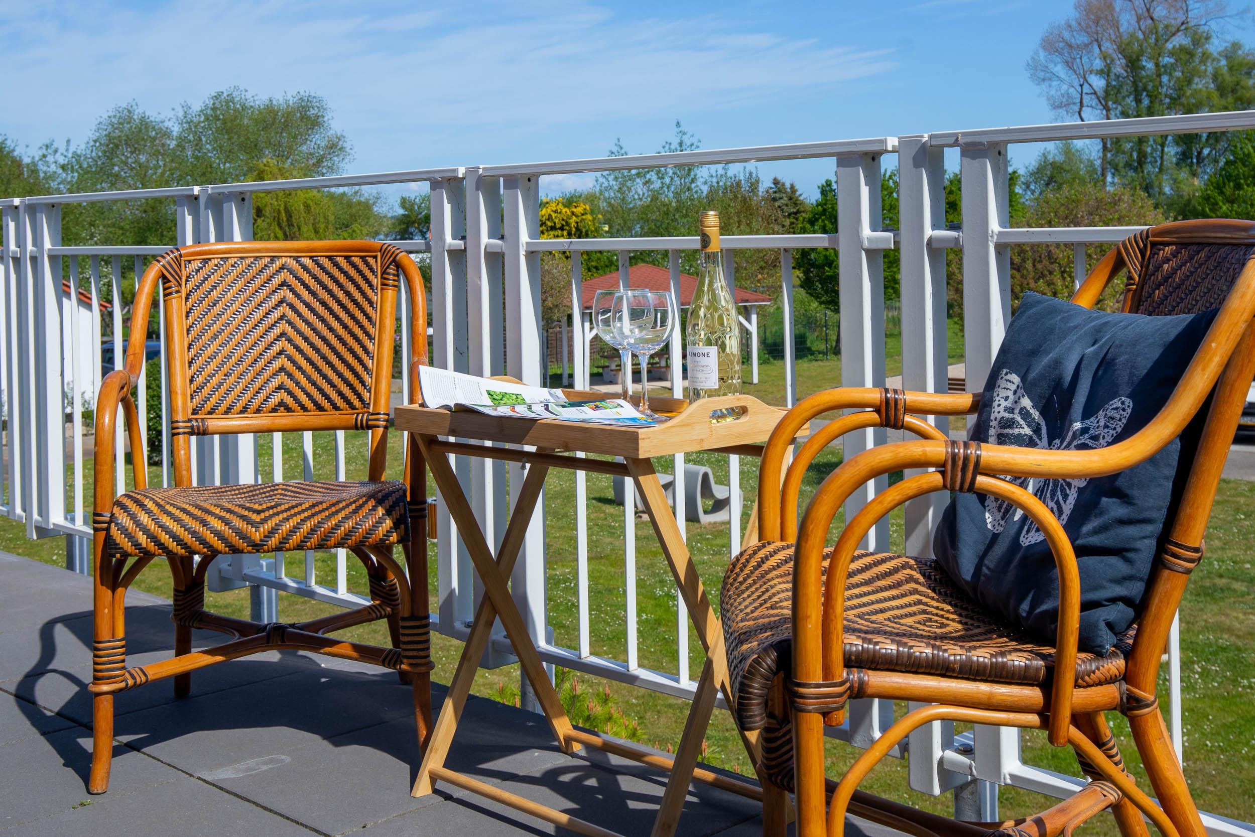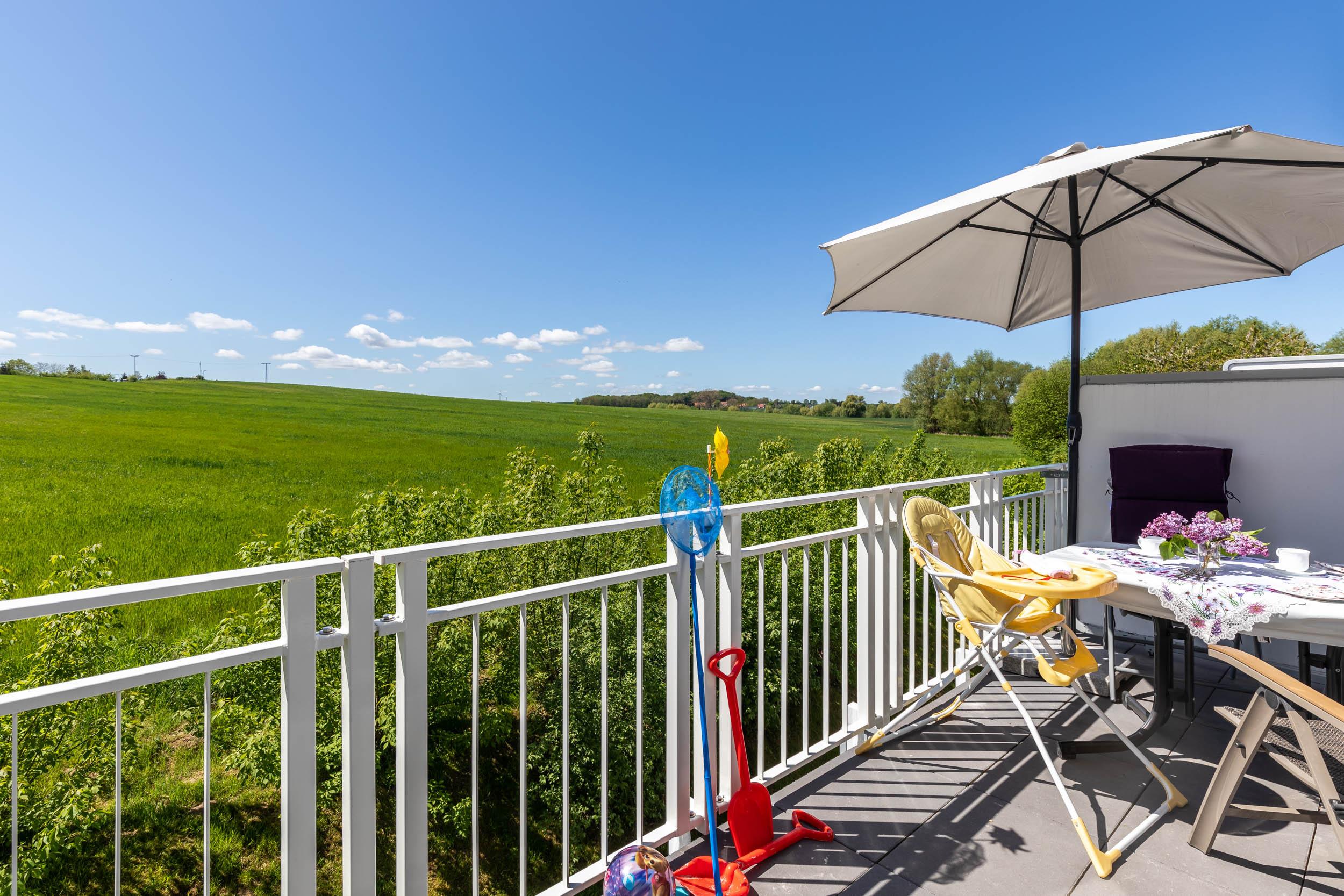 In dieser Nichtraucher-Wohnung stehen für unsere kleinsten Gäste ein Hochstuhl und ein Reisebettchen mit passender Matratze kostenfrei zur Nutzung bereit. Die Wohnung hat einen eigenen Eingang über den Laubengang mit herrlicher Aussicht zur Ostsee.