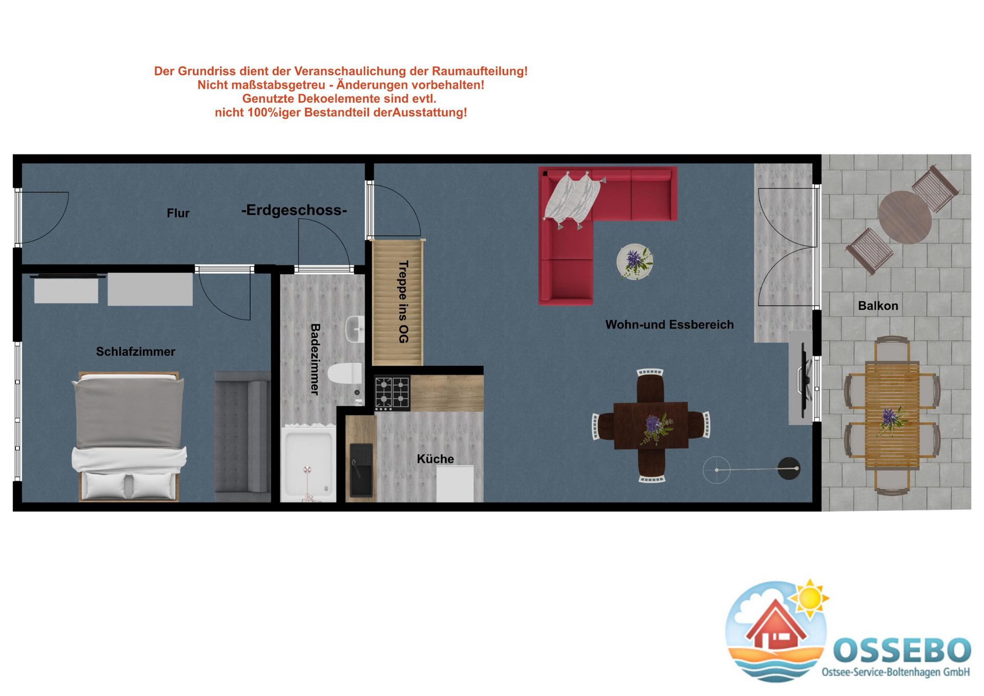 Die familienfreundliche 3-Zimmer-Wohnung im 1.OG erstreckt sich auf 70qm Wohnfläche über 2 Ebenen und bietet eine Ausstattung für max. 2 Erwachsene + 3 Kinder.