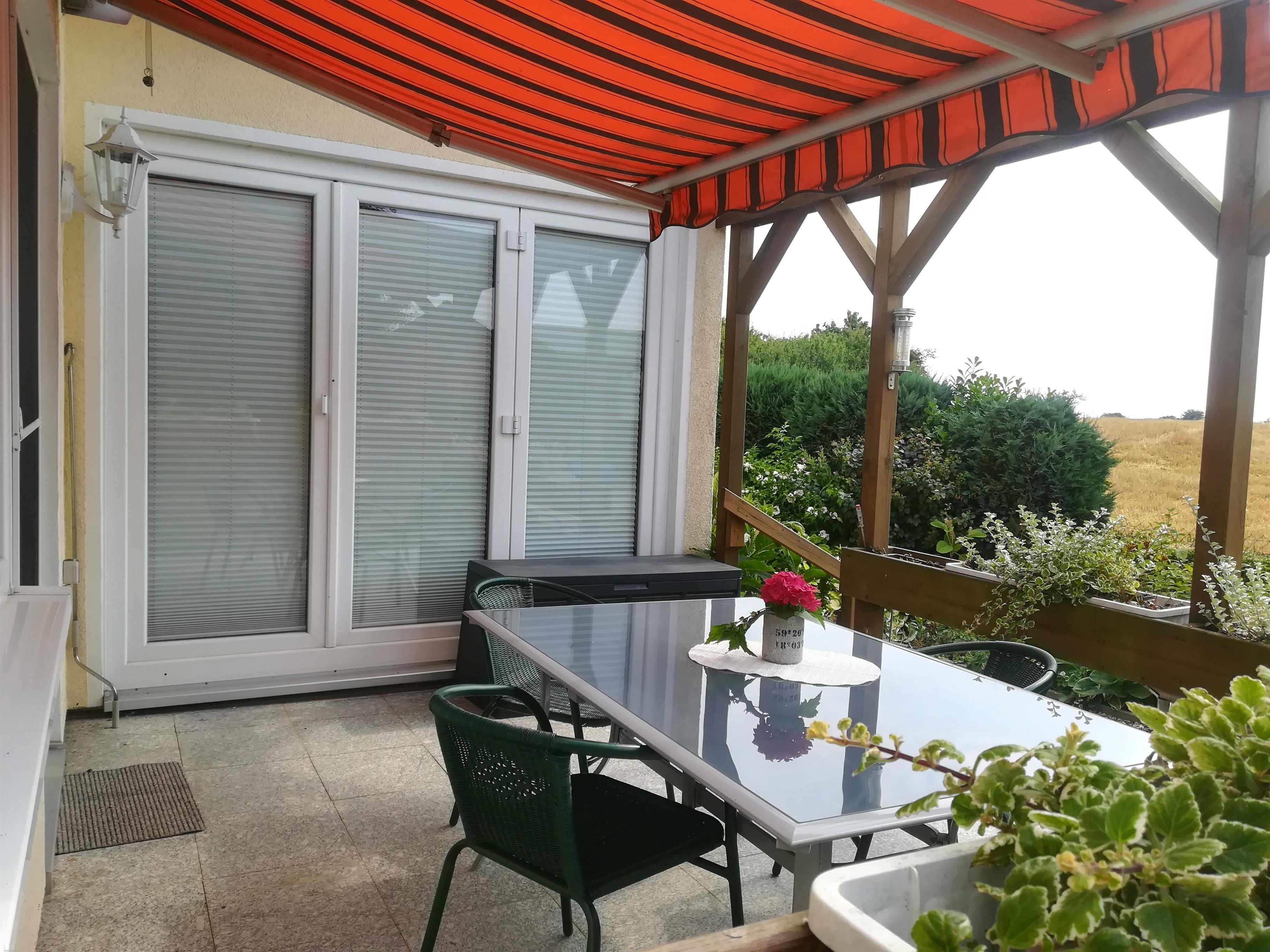 Die Terrasse zur Wohnung befindet sich ebenerdig und lädt zum Verweilen ein.
