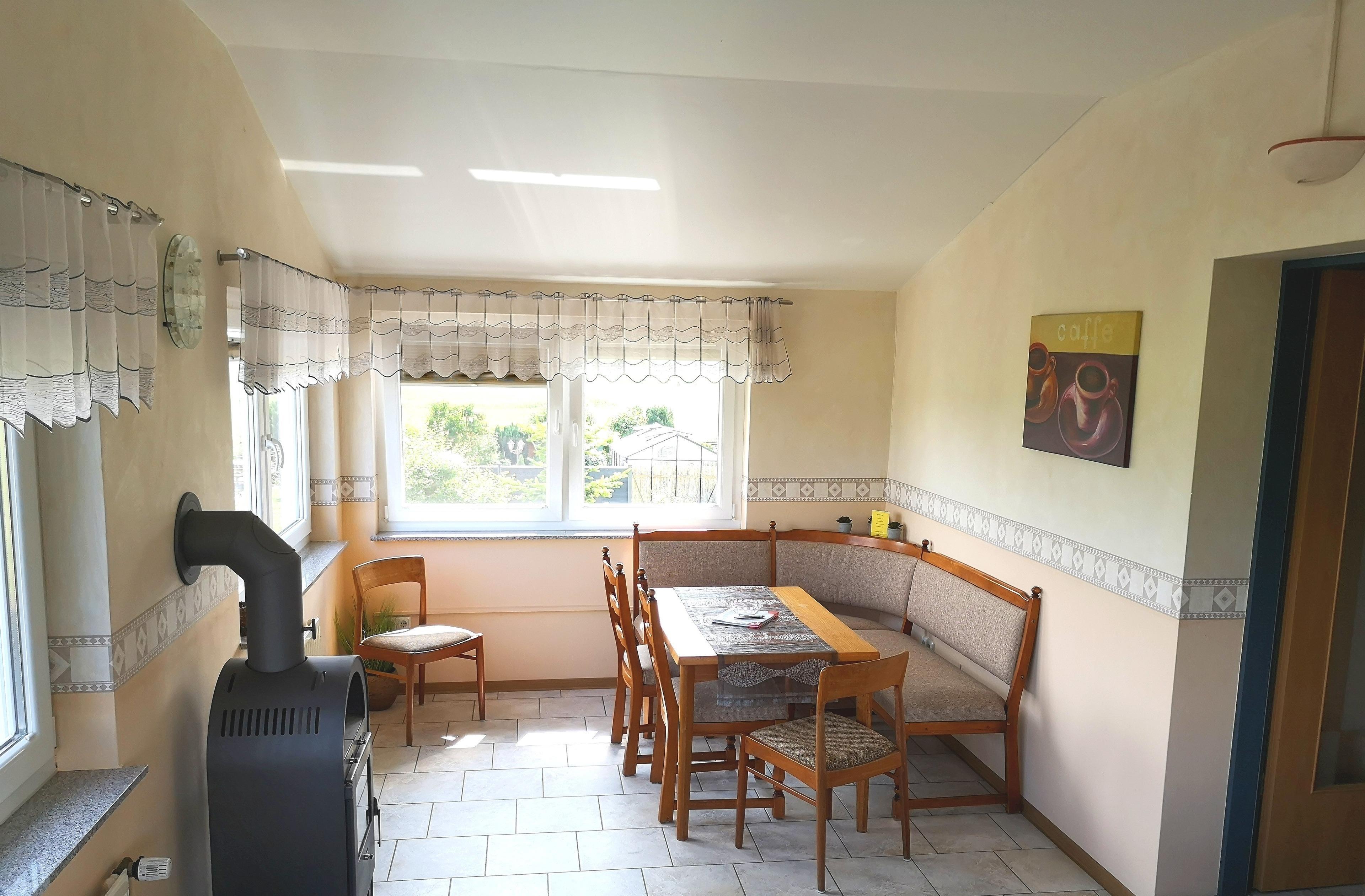 Die zweite Wohnung besteht aus 2 Schlafzimmern, Bad mit Dusche, Gäste WC, einer Küche, einem Wohnzimmer mit Blick in den Garten und einem tollen Kachelofen,Vom Wohnzimmer geht man über die eigene Terrasse in den Garten.Die Wohnung ist für 4 Personen super geeignet.
