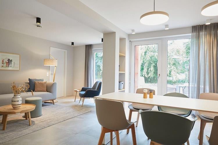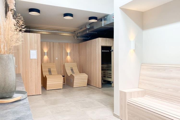 Offene Küche(Kochplatte(4 Kochplatten, Induktion), Wasserkocher, Toaster, Kaffeemaschine, Backofen, Mikrowelle, Spülmaschine, Kühlschrank(+ Gefrierfach)), Wohn/Esszimmer(TV(Satellit), Esstisch, Sitzecke, Radio), Schlafzimmer(Doppelbett(180 x 200 cm)), Schlafzimmer(Doppelbett(180 x 200 cm)), Badezimmer(Dusche, Waschbecken, Toilette, Föhn), Rezeption, Minimarkt, Trockner, Infrarotsauna(Gemeinschaftliche Nutzung mit anderen Gästen, gegen Gebühr), Sauna(Gemeinschaftliche Nutzung mit anderen Gästen, gegen Gebühr), Waschmaschine, Balkon oder Terrasse, Heizung(Fußbodenheizung), Gartenmöbel, Parkplatz, Sonnenschirm, Fitnessgeräte(Gemeinschaftliche Nutzung mit anderen Gästen), Fahrräder verfügbar(gegen Gebühr), Hochstuhl, Bügelbrett, Babybett (kostenpflichtig), Wäschepaket inklusive