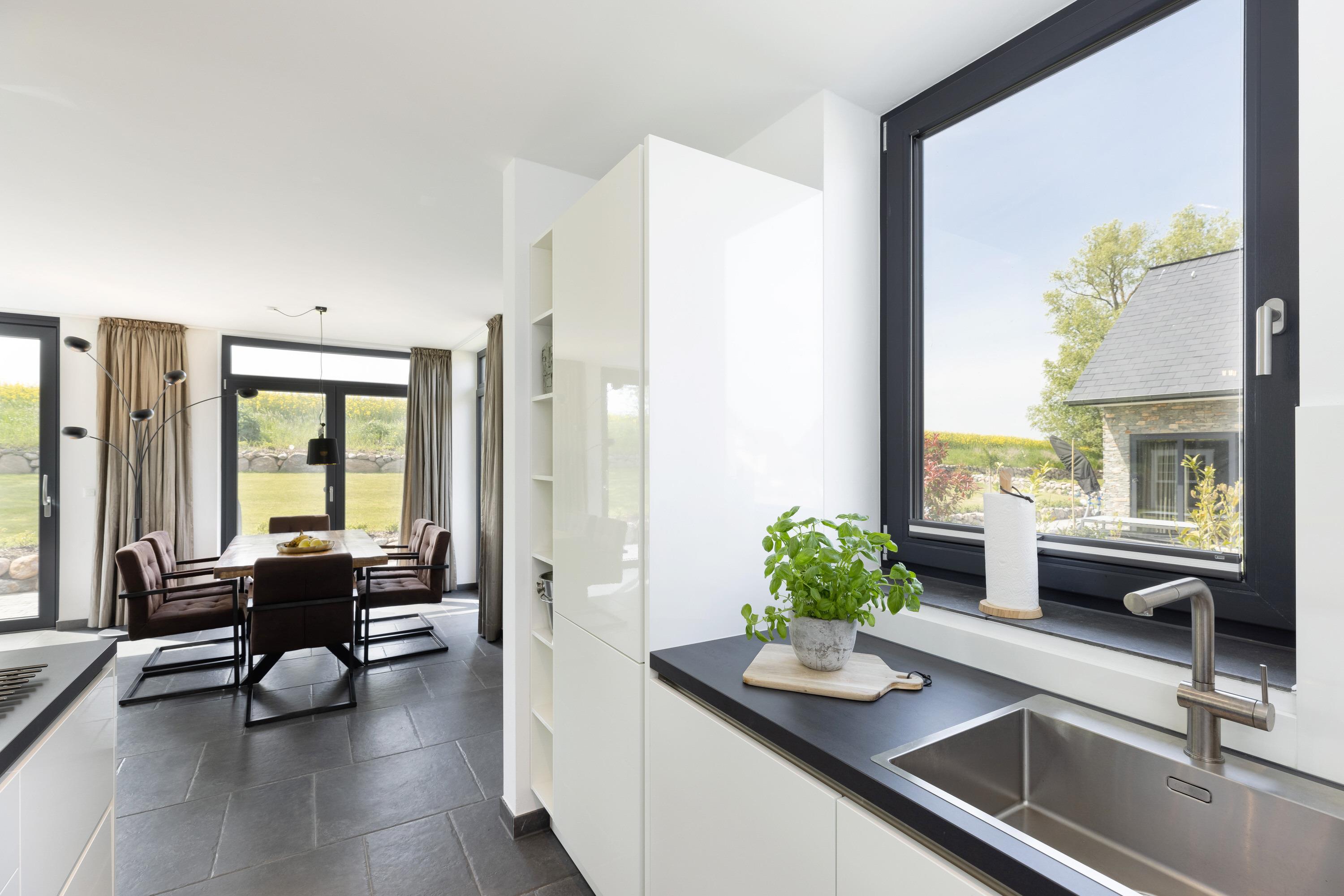 Die moderne Küche ist offen angelegt und mit allem ausgestattet, was man benötigt, um nicht nur den schnellen Snack für zwischendurch, sondern auch das Mehrgangmenü am Abend zubereiten zu können. Großzügige Fensterfronten, ein komfortabler Esstisch und eine gemütliche Sitzgruppe prägen den lichtdurchfluteten Wohnbereich. Und was gibt es Schöneres an kühlen Abenden, als das Flackern von brennenden Holzscheiten im Kamin! Wer die raue Schönheit der Küste in Herbst und Winter liebt, weiß die Wärme und Behaglichkeit eines Kaminfeuers zu schätzen. Denken Sie daher bei Ihrer Buchung am besten gleich daran, Kaminholz für den ersten Abend zu bestellen.