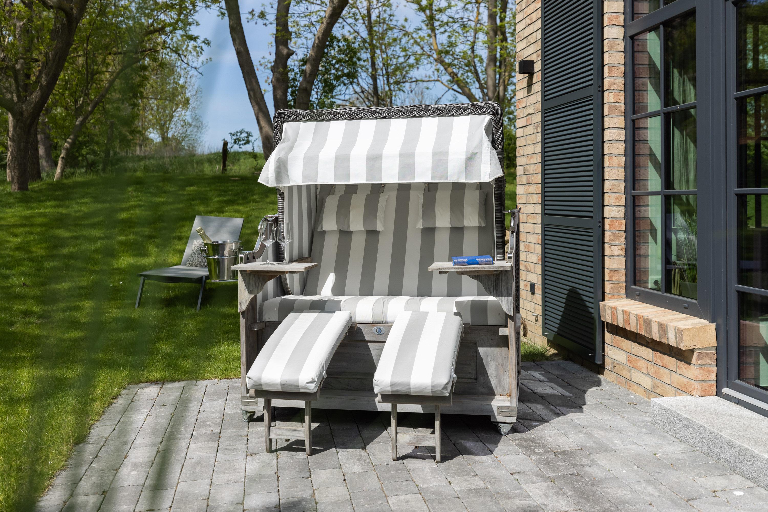 Zum Haus gehört ein eigener Garten mit Terrasse, der mit Gartenmöbeln, einem Strandkorb und einem Sonnenschirm ausgestattet ist - ideal für den Urlaub mit Kindern und/oder Hund! Wir bitten zu berücksichtigen, dass wir einen zweiten Hund nur auf Nachfrage erlauben!
