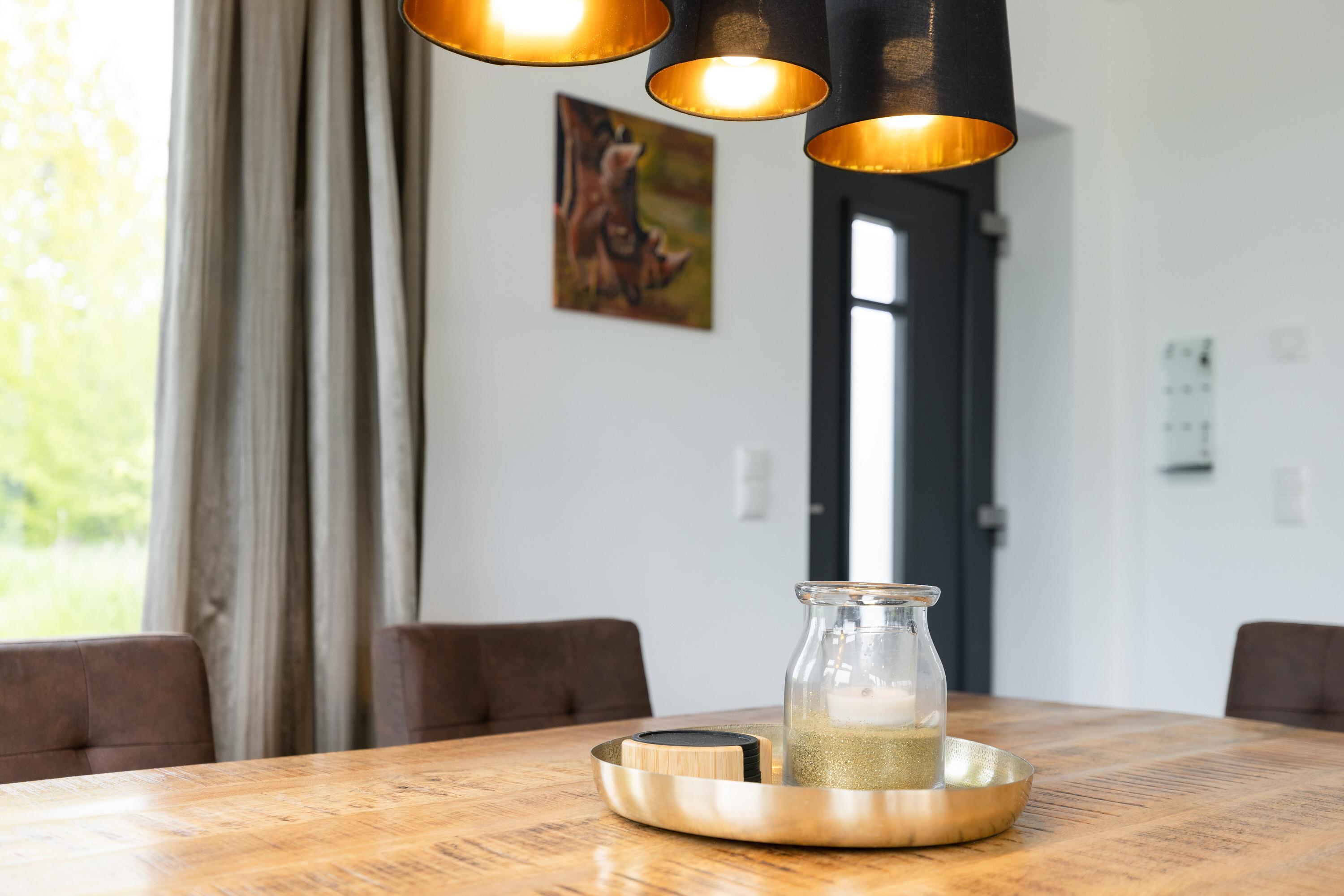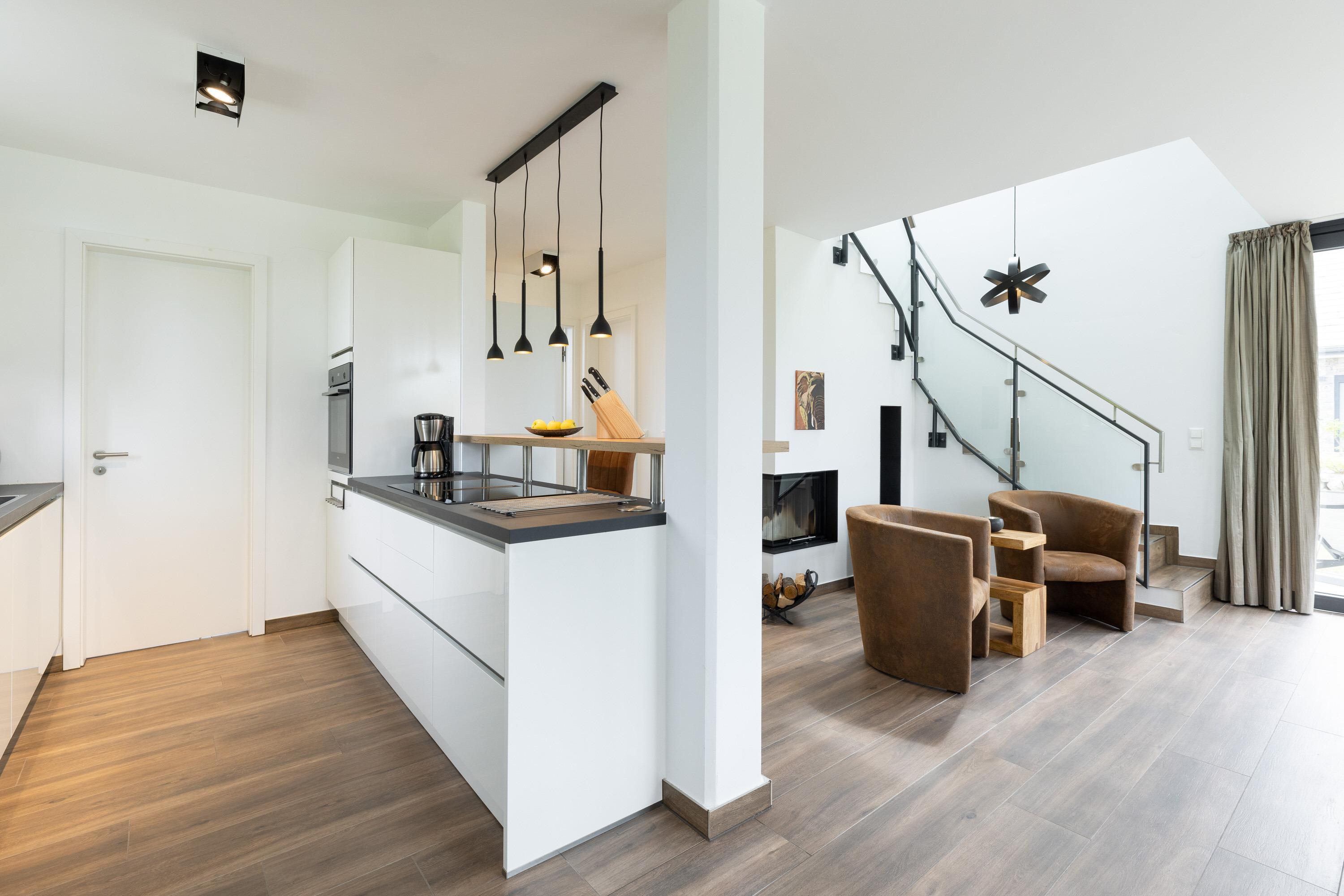Die moderne Küche ist offen angelegt und mit allem ausgestattet, was man benötigt, um nicht nur den schnellen Snack für zwischendurch, sondern auch das Mehrgangmenü am Abend zubereiten zu können. Großzügige Fensterfronten, ein komfortabler Esstisch und eine gemütliche Sitzgruppe prägen den lichtdurchfluteten Wohnbereich. Und was gibt es Schöneres an kühlen Abenden, als das Flackern von brennenden Holzscheiten im Kamin! Wer die raue Schönheit der Küste in Herbst und Winter liebt, weiß die Wärme und Behaglichkeit eines Kaminfeuers zu schätzen. Denken Sie daher bei Ihrer Buchung am besten gleich daran, Kaminholz für den ersten Abend zu bestellen.