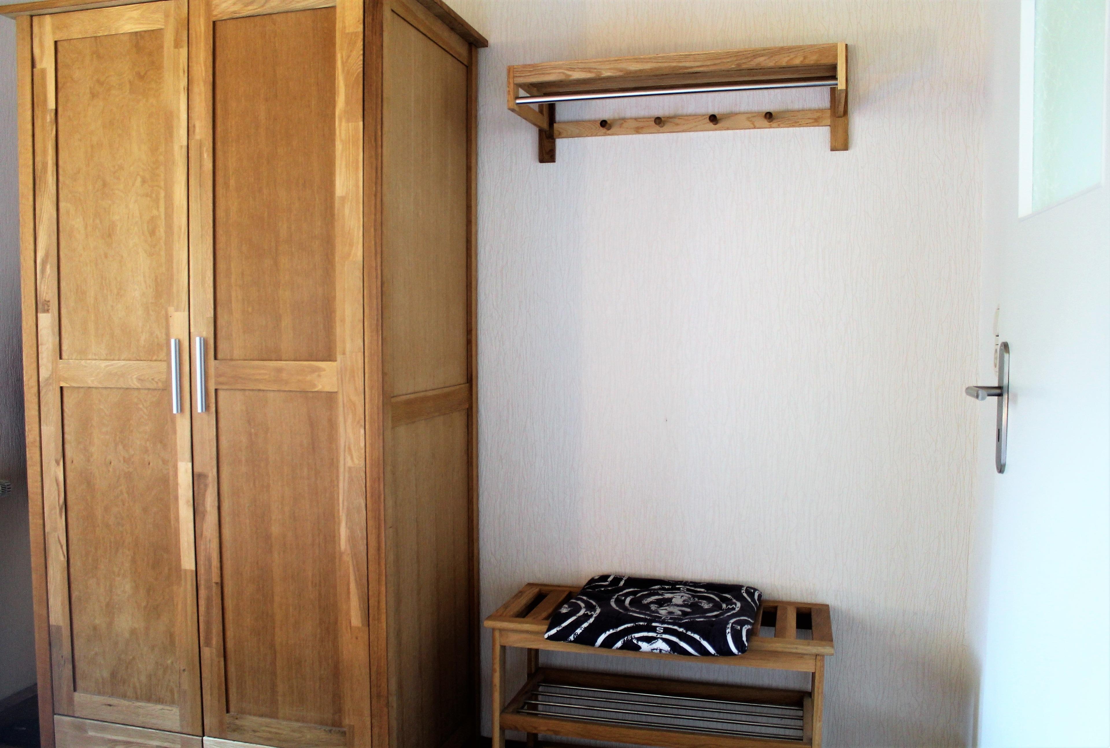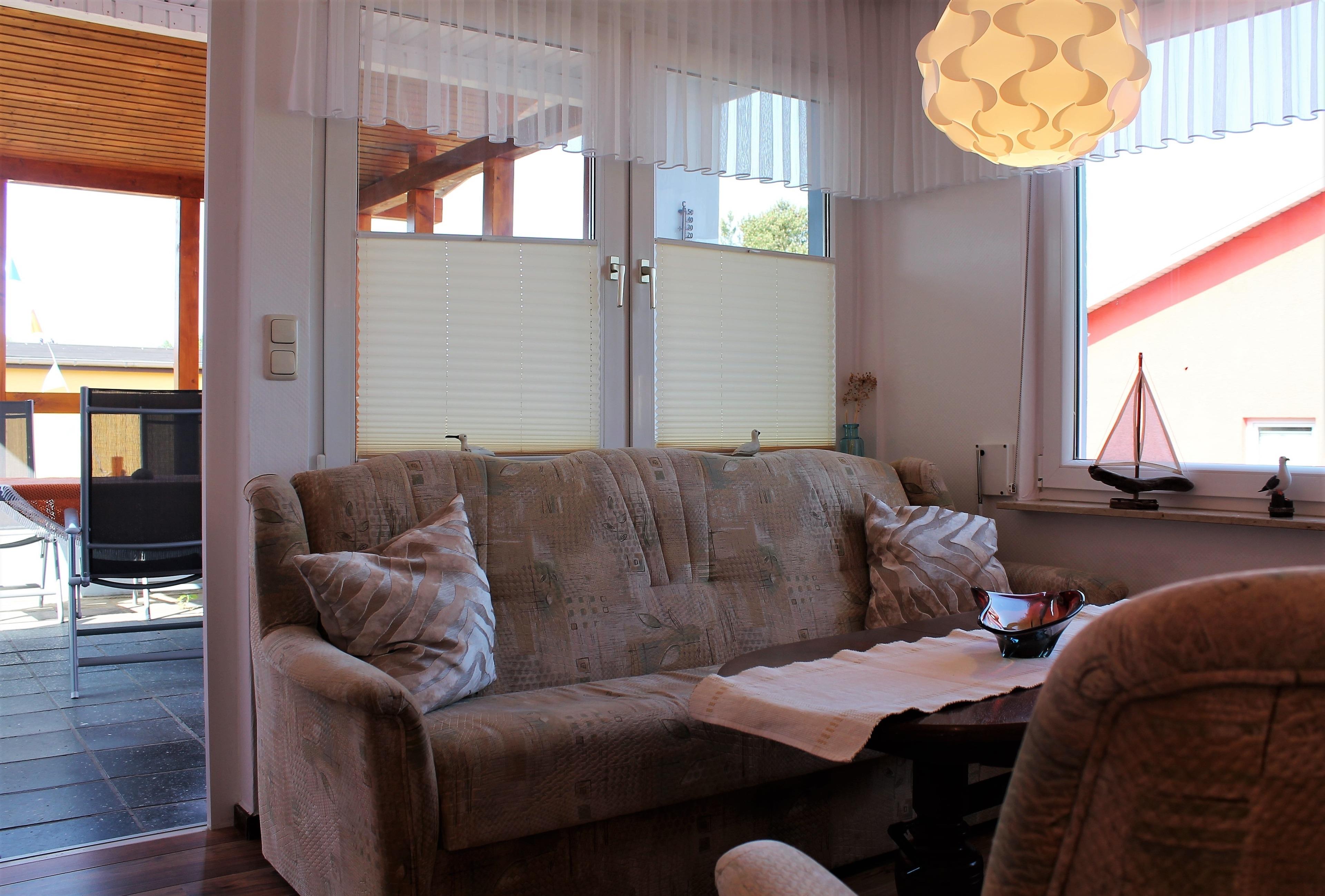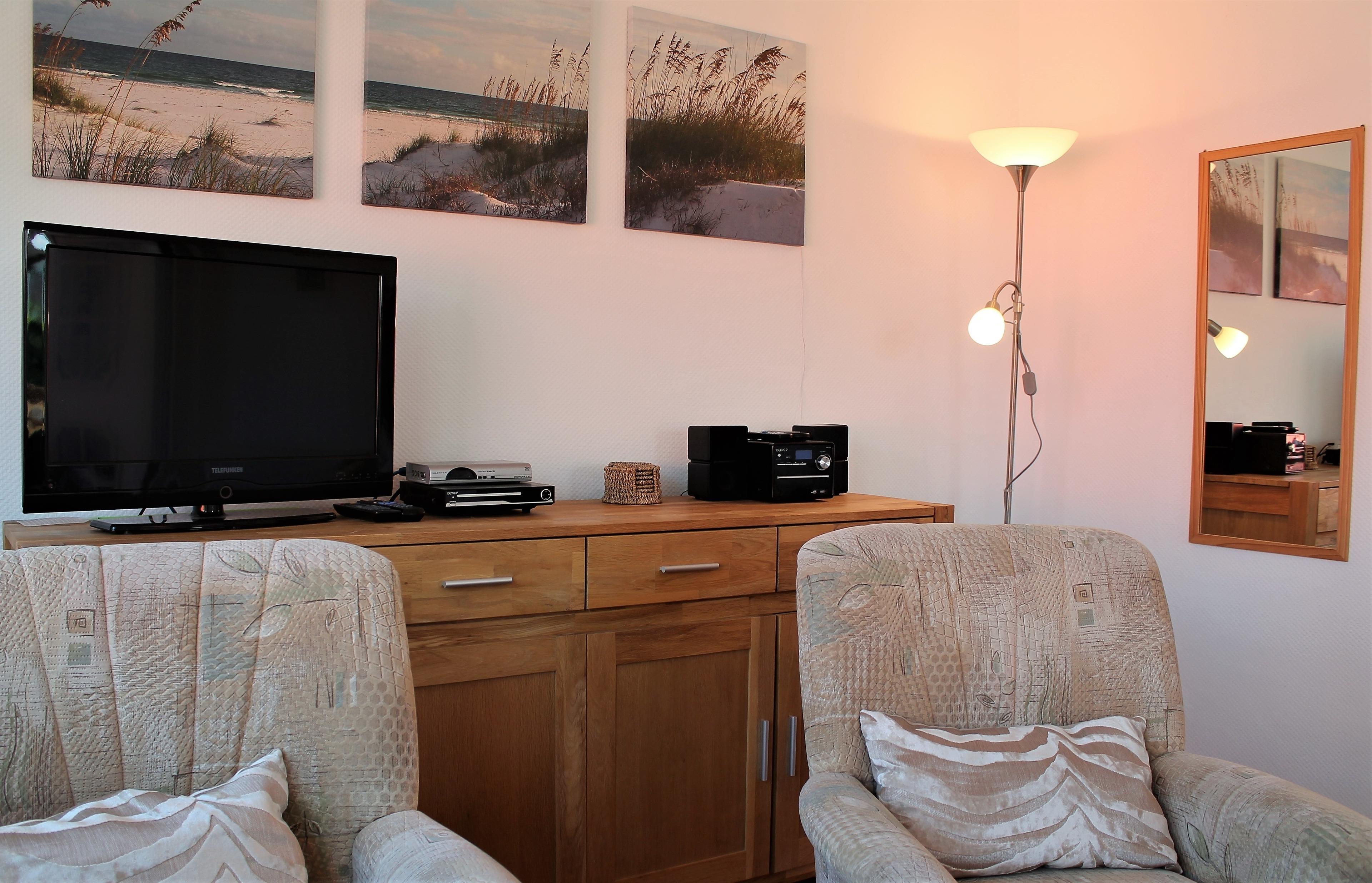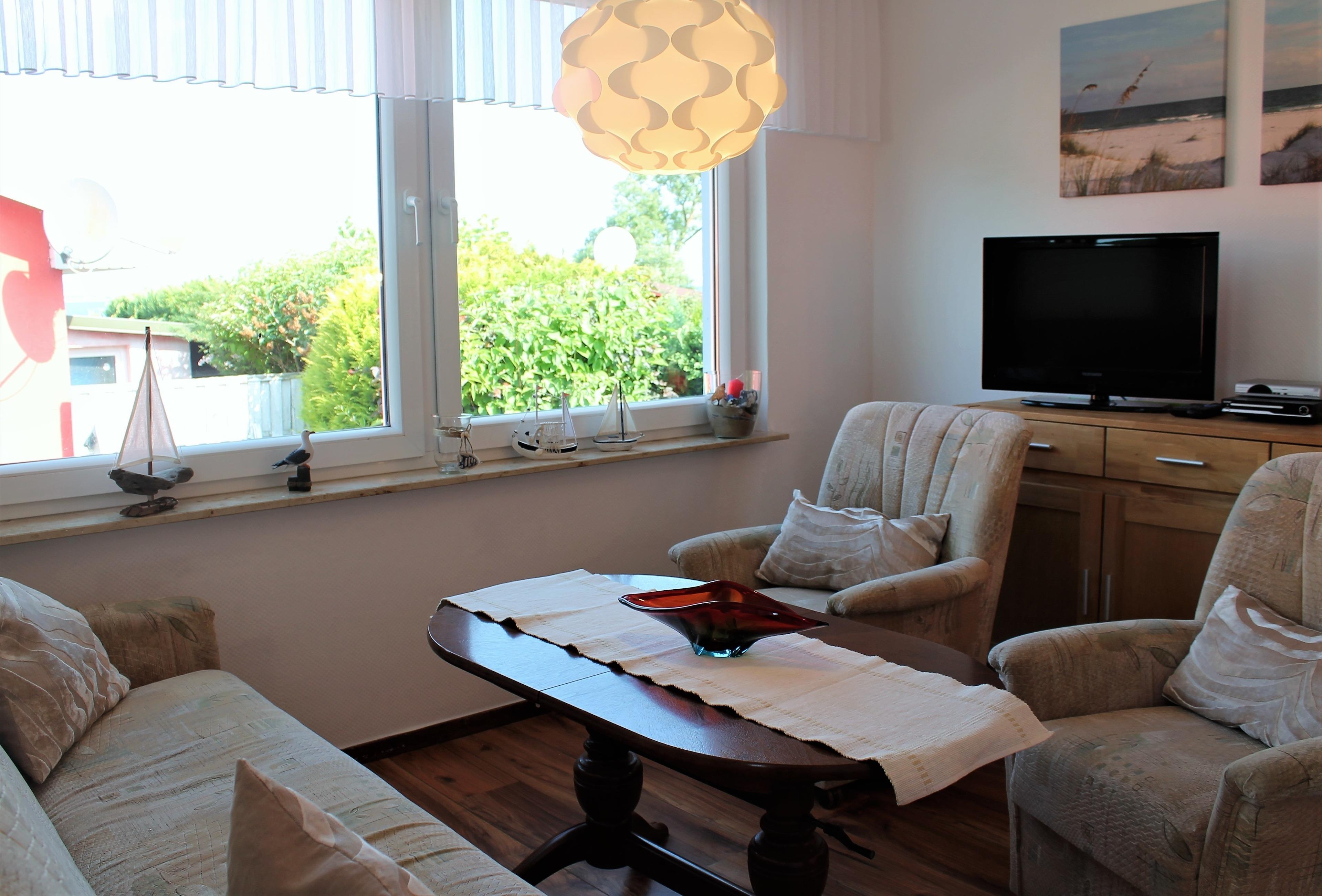 Ausstattung: Das ganzjährig beheizbare 3-Zimmer-Ferienhaus bietet Platz für bis zu vier Personen auf 47m² und ist ausgestattet mit Wohnzimmer, Schlafzimmer, Kinderzimmer(oder auch zweites Schlafzimmer), Küche und Bad(WC/Dusche).Das Wohnzimmer bietet Sitzmöglichkeiten (Couch und zwei Sessel) um einen ausziehbaren und höhenverstellbaren Tisch. Ebenfalls sind im Wohnzimmer ein Flachbildfernseher, DVD-Player, eine Musikanlage mit Radio und CD-Player und eine Spielebox mit Brettspielen vorhanden. Sie können vom Wohnzimme auf die schöne Bucht der Ostsee, die " Wohlenberger Wiek" blicken. Im Schlafzimmer befinden sich ein Doppelbett(1,80x2,0m) und ein Kleiderschrank. Das Kinderzimmer (oder auch zweites Schlafzimmer) ist mit Etagenbett, je 0,90x2,0m, einem Tisch mit zwei Sitzgelegenheiten, sowie mit einem Flachbildfernseher ausgestattet. Die neue Küche ist komplett mit Elektroherd (Ceranfeld), Backofen, Geschirrspülmaschine, Mikrowelle, Kühlschrank mit Gefrierfach, Kaffeemaschine, Toaster und Wasserkocher ausgestattet. Das Bad verfügt über Dusche und WC, sowie einer Campingwaschmaschine für Kleinwäsche. Bei Bedarf kann ein Kinderreisebett und ein Hochstuhl beigestellt werden.