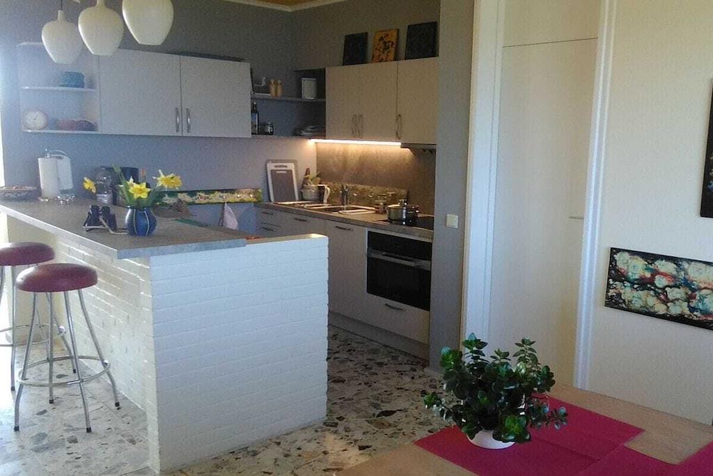 Diese schöne Meerblick-Ferienwohnung liegt direkt auf der Steilküste der weißen Sandbucht von Hohwacht. Genießen Sie den Blick über die Ostsee - bei guter Sicht bis zur Insel Fehmarn und mit Glück auf vorbeiziehende Schweinswale und Delphine. Zwei Schlafzimmer und der große Wohn/Essbereich mit offener Barküche bieten reichlich Platz für bis zu 3 Personen. Meerblick und Seeblick. Eine Infrarotsauna hilft beim Entspannen und Aufwärmen nach Ihrem Spaziergang in den kühleren Jahreszeiten, lindert Muskelschmerzen und ist mit ihren bis zu 60 Grad auch für Menschen geeignet, die die klassisch finnische Sauna nicht mögen oder vertragen. Wir bitten darum, nur auf dem Balkon und nicht in der Ferienwohnung zu rauchen.