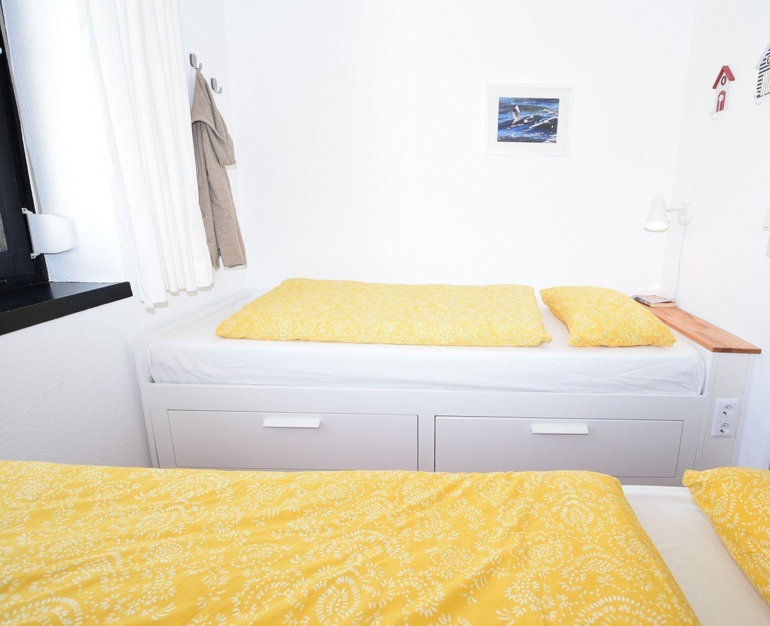 Die Ferienwohnung "Komm to Ruh" an der Hohwachter Bucht bietet Platz für bis zu 4 Personen und überzeugt mit großzügigen Räumen und moderner Ausstattung. Der große Wohn- und Essbereich mit offener Küche lädt zum gemeinsamen Kochen und Essen ein. Die Küche ist vollständig ausgestattet mit Cerankochfeld, Backofen, Kaffeemaschine sowie Kühlschrank mit Gefrierfach. Zwei Schlafzimmer stehen zur Verfügung: das erste mit einem Doppelbett (180x200 cm) und großem Kleiderschrank, das zweite mit zwei Einzelbetten (80x200 cm). Ein modernes Badezimmer mit großer Dusche, Waschbecken und WC rundet das Angebot ab. WLAN steht kostenfrei zur Verfügung. Es handelt sich um eine Nichtraucherwohnung, Haustiere sind nicht erlaubt. Kurtaxe wird vor Ort erhoben.