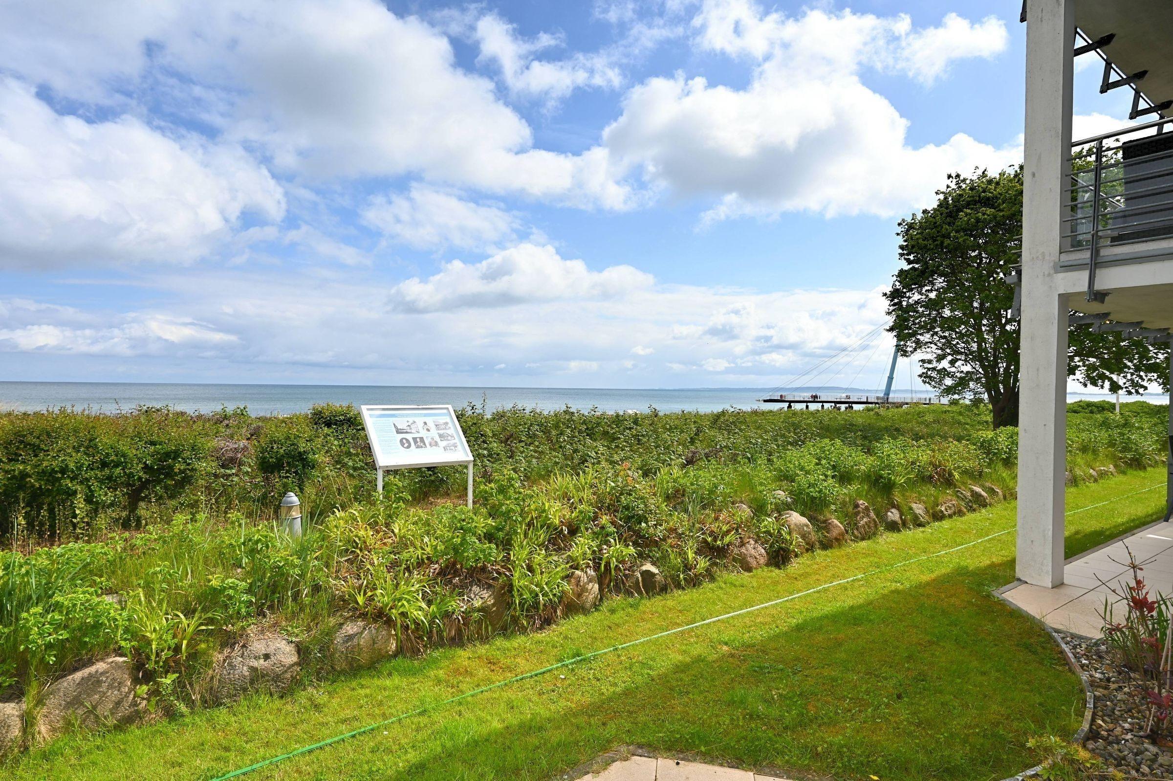 Moderne Ferienwohnung in Hohwacht mit direktem Strandzugang und herrlichem Meerblick auf großer Terrasse.