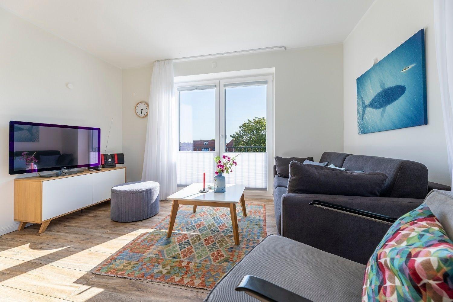 Moderne Ferienwohnung mit Balkon und seitlichem Meerblick, direkt an der Strandpromenade in Hohwacht gelegen.