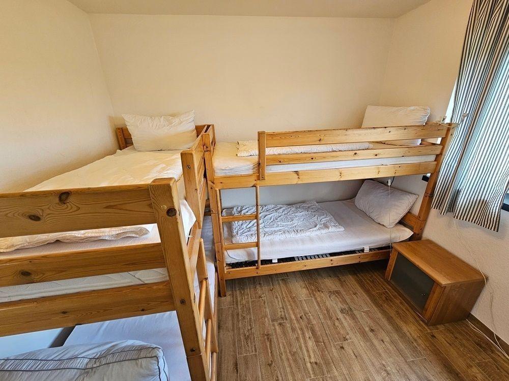 Es gibt 3 Schlafzimmer: zwei mit Doppelbetten und eines mit zwei Stockbetten, was zusätzlichen Schlafplatz für 4 Personen bietet. Das Badezimmer ist mit einer Duschwanne und WC ausgestattet, zusätzlich gibt es ein Gäste-WC. In der Unterkunft steht WLAN zur Verfügung, und Haustiere sind erlaubt. Ein größerer Parkplatz befindet sich in der Nähe.