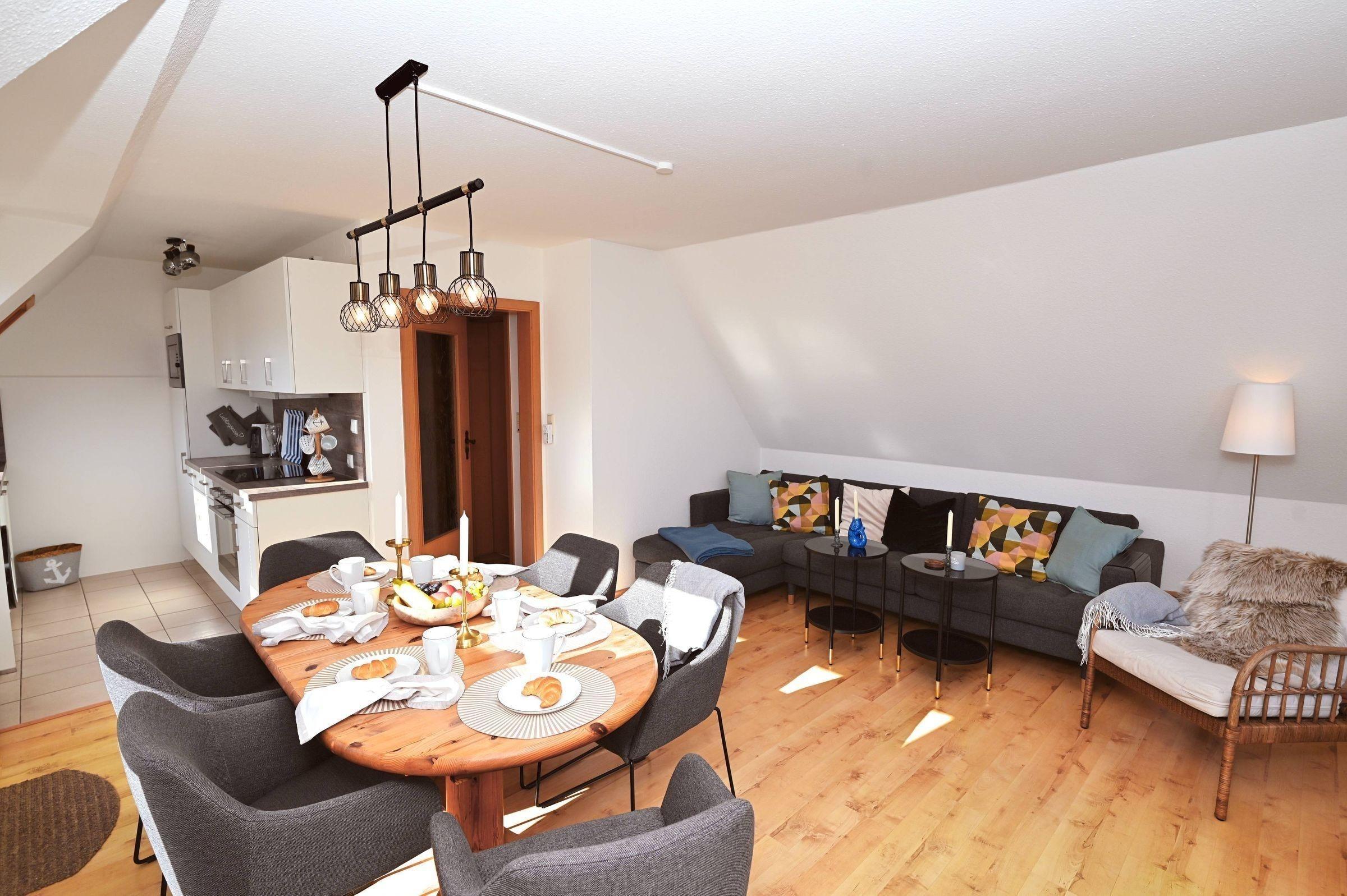 Die Ferienwohnung Ankerplatz in Hohwacht bietet modernen Komfort und liegt nur 400 Meter vom Strand entfernt.