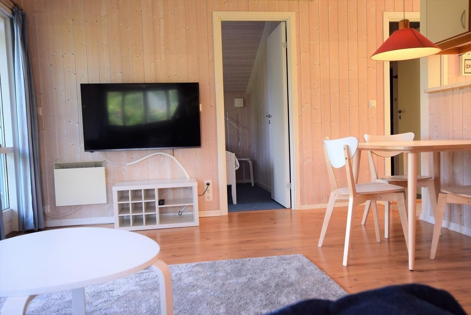 Das Ferienhaus "Lille Bo", im Schwedenstil erbaut, bietet auf über 60 m² Wohnfläche Platz für 3 Personen. Der lichtdurchflutete Wohnbereich verfügt über eine bequeme Sitzgruppe und einen Essbereich sowie einen großen Fernseher, der an die offene Küche grenzt. Diese ist mit einem Ceran-Kochfeld, einem Backofen, einem Kühlschrank mit Gefrierfach und weiteren Geräten ausgestattet. Das erste Schlafzimmer ist mit einem Doppelbett ausgestattet, während das zweite Schlafzimmer ein Einzelbett und einen großen Kleiderschrank bietet. Leselampen sind in beiden Schlafzimmern vorhanden. Im Badezimmer befindet sich eine Dusche sowie ein WC mit beleuchtetem Spiegel, das direkt an die Holzsauna anschließt, die kostenfrei genutzt werden kann. Diese Unterkunft ist nicht für Haustiere gestattet und das Laden von E-PKW am Haus ist nicht erlaubt.