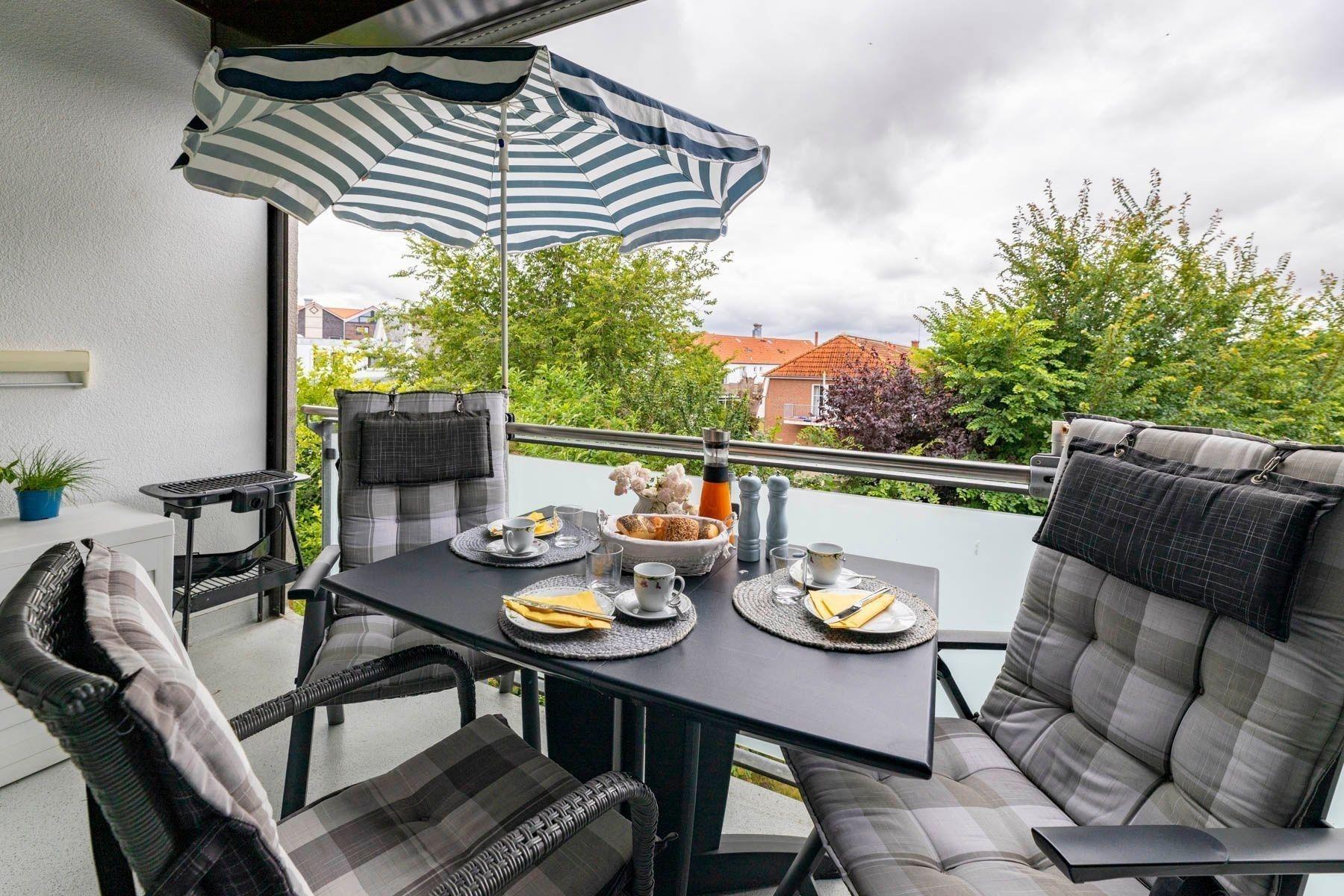 Die Ferienwohnung "Regina's Strandkorb" bietet einen großzügigen, nach Süden ausgerichteten Balkon, der nicht nur lichtdurchflutet, sondern auch überdacht ist. Dieses gemütliche Außenareal eignet sich perfekt für entspannte Stunden, selbst bei wechselhaftem Wetter. Hier können die Gäste die Sonne genießen oder sich in der Abenddämmerung zurücklehnen. Die Ferienwohnung ist Teil der Ferienwohnanlage am Hohen Ufer in Hohwacht, in der verschiedene Einrichtungen wie ein Gemeinschaftsparkplatz und eine abschließbare Fahrradunterstellmöglichkeit bereitstehen. Außerdem ist die Lage ideal, um die Nähe zur Hohwachter Steilküste und dem Kurpark zu erkunden. Der Balkon lädt zum Verweilen ein und ergänzt somit das Angebot an Komfort und Stil, das die Ferienwohnung für bis zu 4 Erwachsene bereithält. Haustiere sind willkommen.