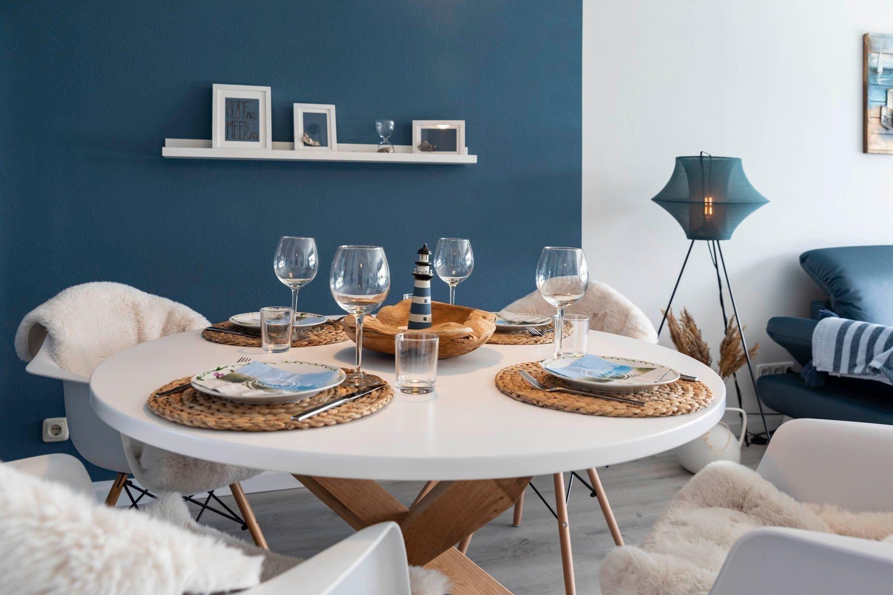 Die Ferienwohnung "Regina's Strandkorb" bietet eine stilvolle und moderne Einrichtung für bis zu 4 Erwachsene. Das lichtdurchflutete Wohnzimmer mit Zugang zum großen Südbalkon lädt zum Verweilen ein und ist mit einem komfortablen Sofa sowie einem modernen Fernseher ausgestattet, der Zugang zu MagentaTV, Netflix und Disney+ bietet. Die separate Küche ist umfassend eingerichtet mit einem Ceran-Kochfeld, Mikrowelle, Backofen, Airfryer, Wasserkocher, Kaffeemaschine, Toaster, großem Kühlschrank mit Gefrierfach und einer Spülmaschine. In der Wohnung befinden sich zwei Schlafzimmer, eines mit einem Boxspringbett (180x200 cm) und ein weiteres mit einem ausziehbaren Schubkastenbett (Doppelbett 160x200 cm). Das Badezimmer erfüllt mit Dusche, beleuchtetem Spiegel und Waschbecken alle Ansprüche. Die Unterkunft verfügt zudem über ausreichend Stauraum in Kommoden und einem großen Kleiderschrank. Haustiere sind erlaubt.