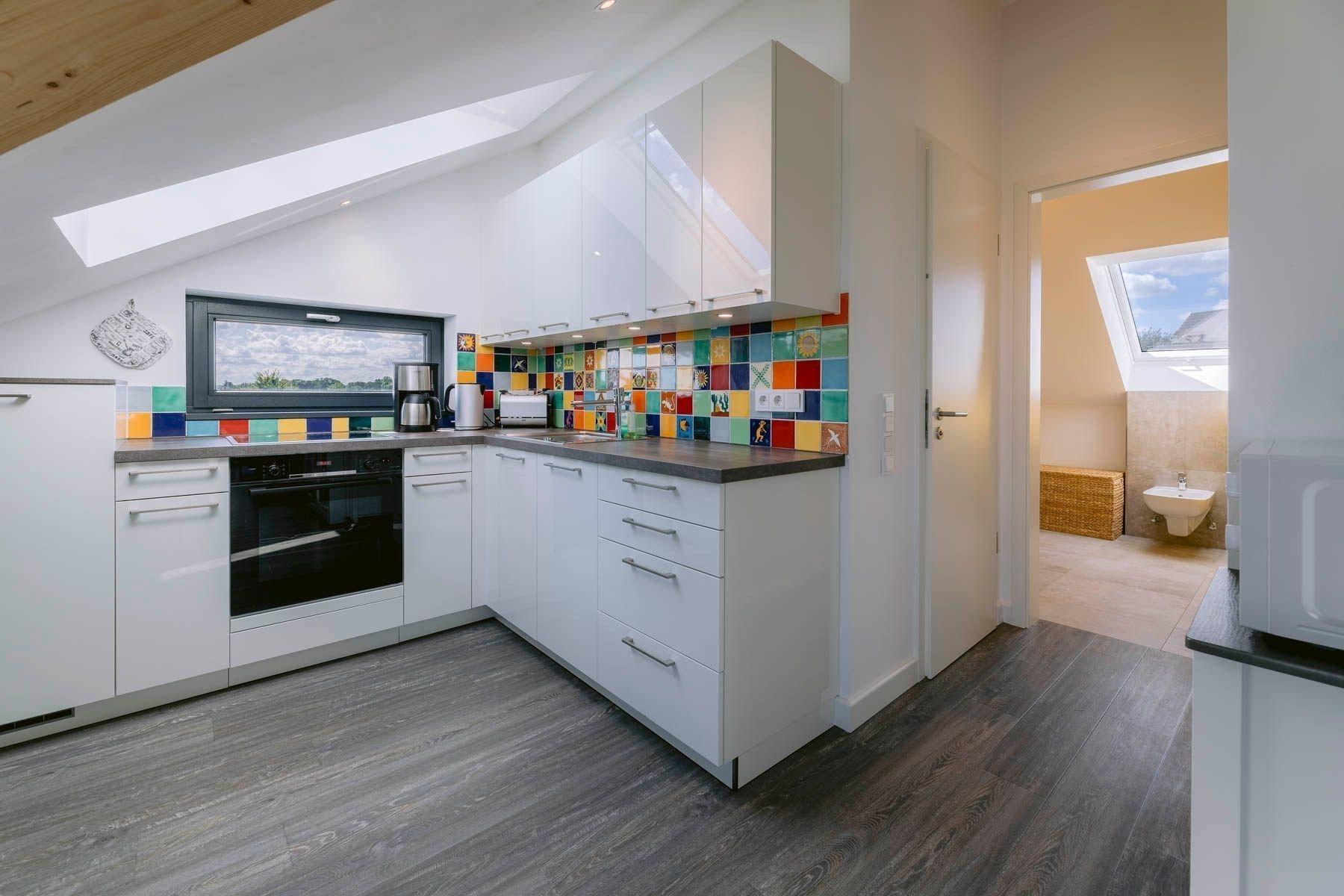 Das luxuriöse Ferienhaus in Hohwacht bietet Platz für bis zu 8 Gäste. Es verfügt über zwei großzügige Badezimmer sowie zwei Gäste-WCs, die den Komfort für alle Gäste gewährleisten. Die hellen und einladenden Räume sind modern eingerichtet und schaffen eine behagliche Atmosphäre. Vier Schlafzimmer sorgen für vielfältige Schlafmöglichkeiten: zwei Doppelbetten (180x200 cm), ein Etagenbett (unten 120x200 cm; oben 90x200 cm) und ein Stapelbett, das separat genutzt werden kann. Die gut ausgestattete Küche beinhaltet unter anderem einen Sandwichmaker und eine elektrische Multireibe. Der behindertenfreundliche Grundriss im Erdgeschoss, mit breiten Türen und barrierefreier Dusche, sorgt für zusätzlichen Komfort. Ein Hauswirtschaftsraum mit Waschmaschine und Reinigungsutensilien rundet die Ausstattung ab. Das Haus ist ein Neubau aus 2023 und sowohl funktionell als auch stilvoll gestaltet.