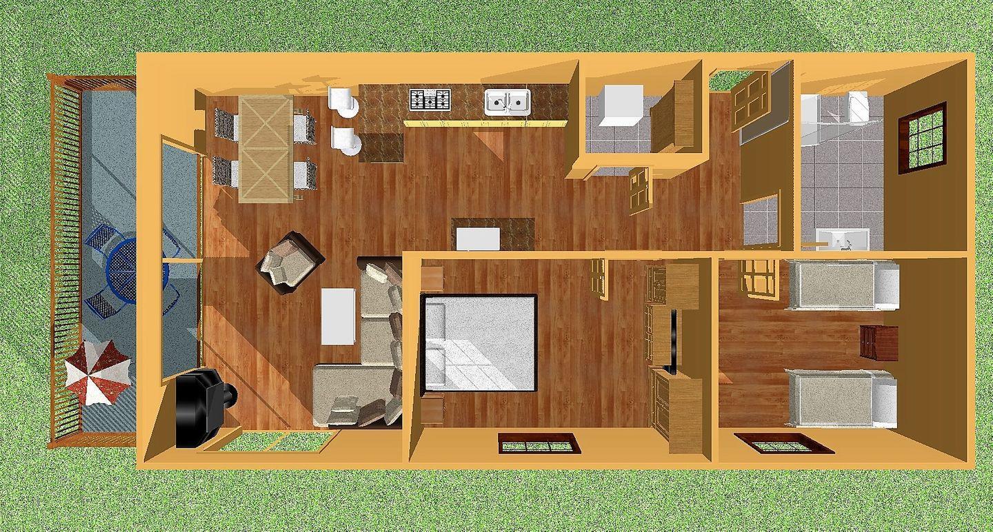 Die Wohnung liegt im Erdgeschoss eines Ferienhauses in direkter Strandlage. Drei Zimmer verteilen sich auf insgesamt 73 qm.