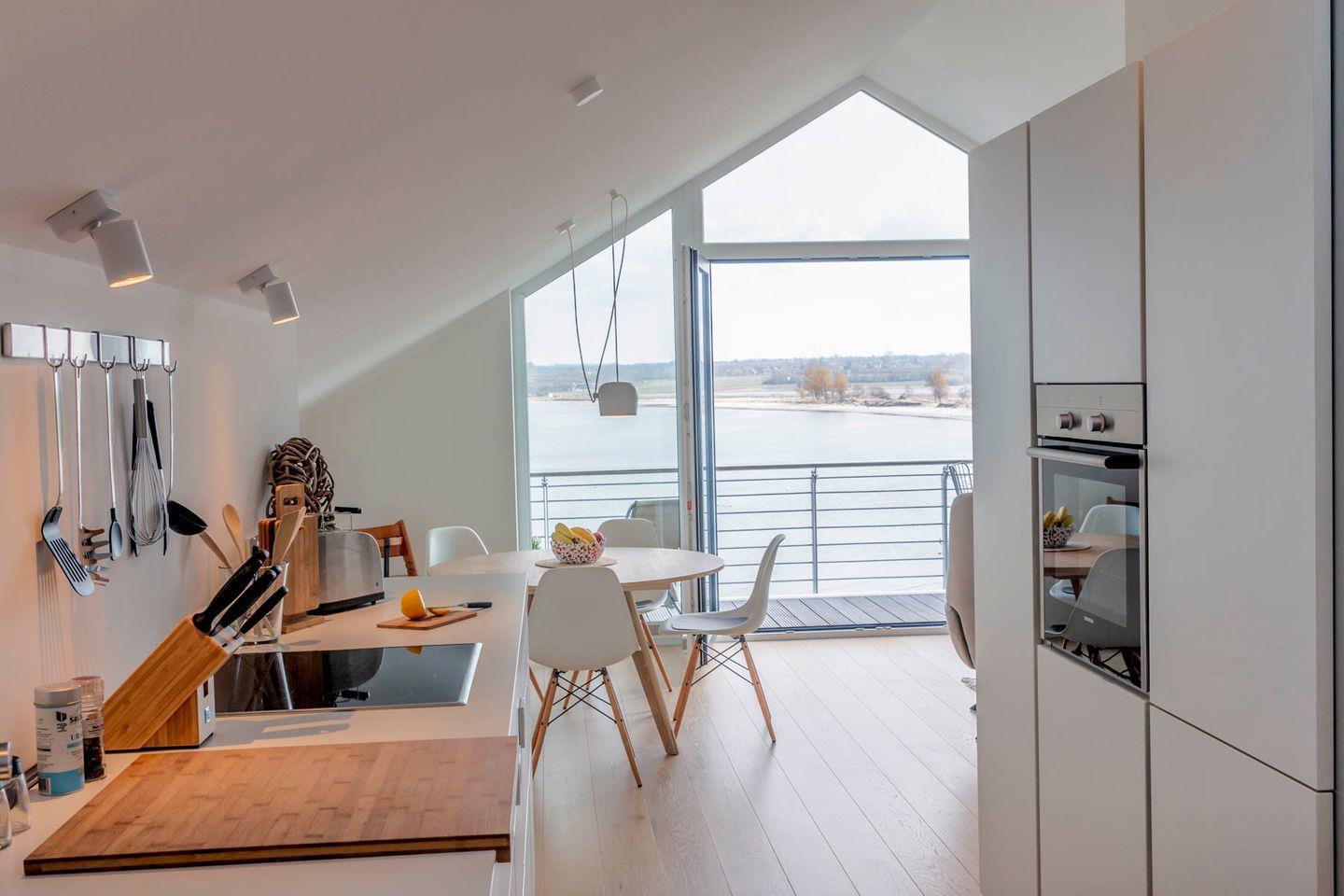 In dem Wohnraum integriert sorgt die hochwertige, offene Bulthaup-Küche für eine moderne Raumaufteilung. Die Küche ist umfassend ausgestattet und bietet ausreichend Arbeitsfläche, um im Urlaub auch einmal anspruchsvoller zu kochen. Es stehen ihnen eine Kaffee- und eine Espressomaschine, Wasserkocher, Toaster sowie eine Spülmaschine zur Verfügung.