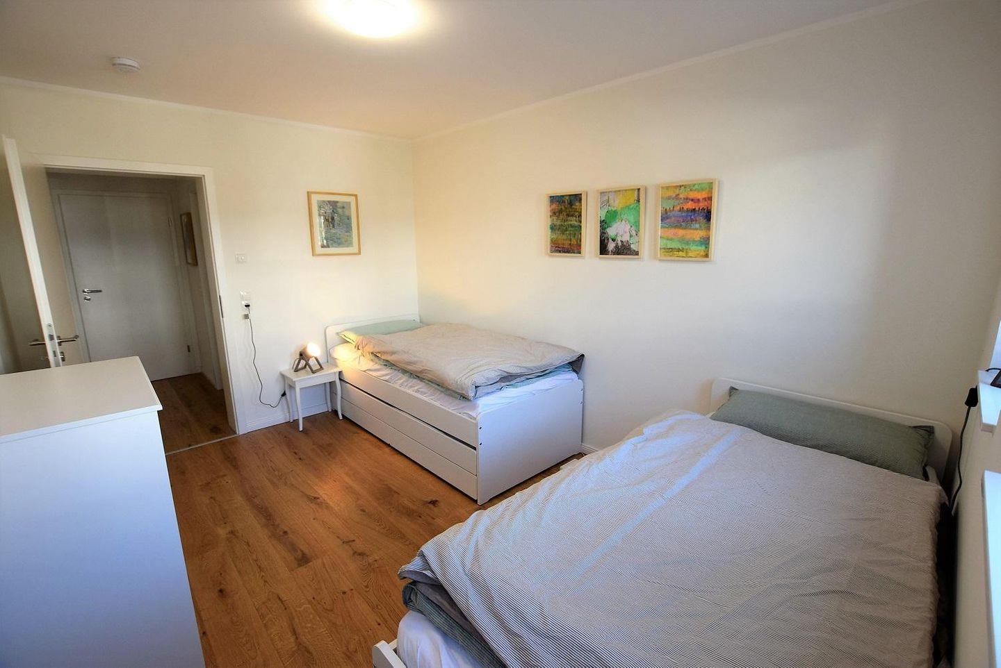 Die zwei Schlafzimmer mit großen Fenstern sind besonders hell, ein Schlafzimmer mit Doppelbett, und geräumigem Kleiderschrank. Das zweite Schlafzimmer verfügen über 2 Einzelbetten, die ausgezogen werden können sowie ebenfalls über einen Kleiderschrank.