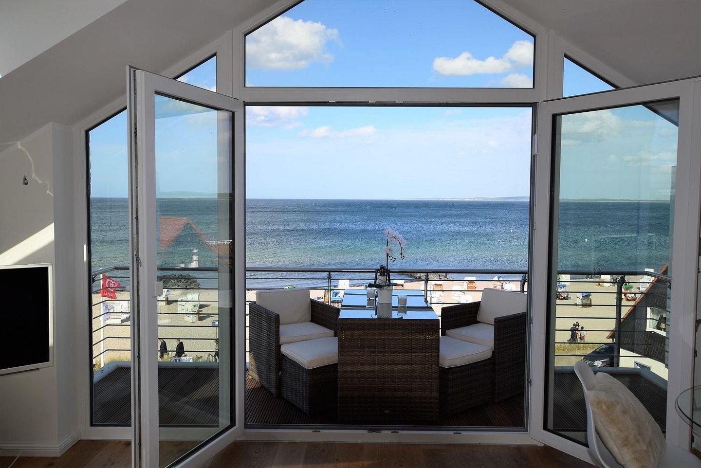 Hochwertige Ferienwohnung Ostseesternchen mit Traumblick auf Ostsee und weißen Sandstrand.