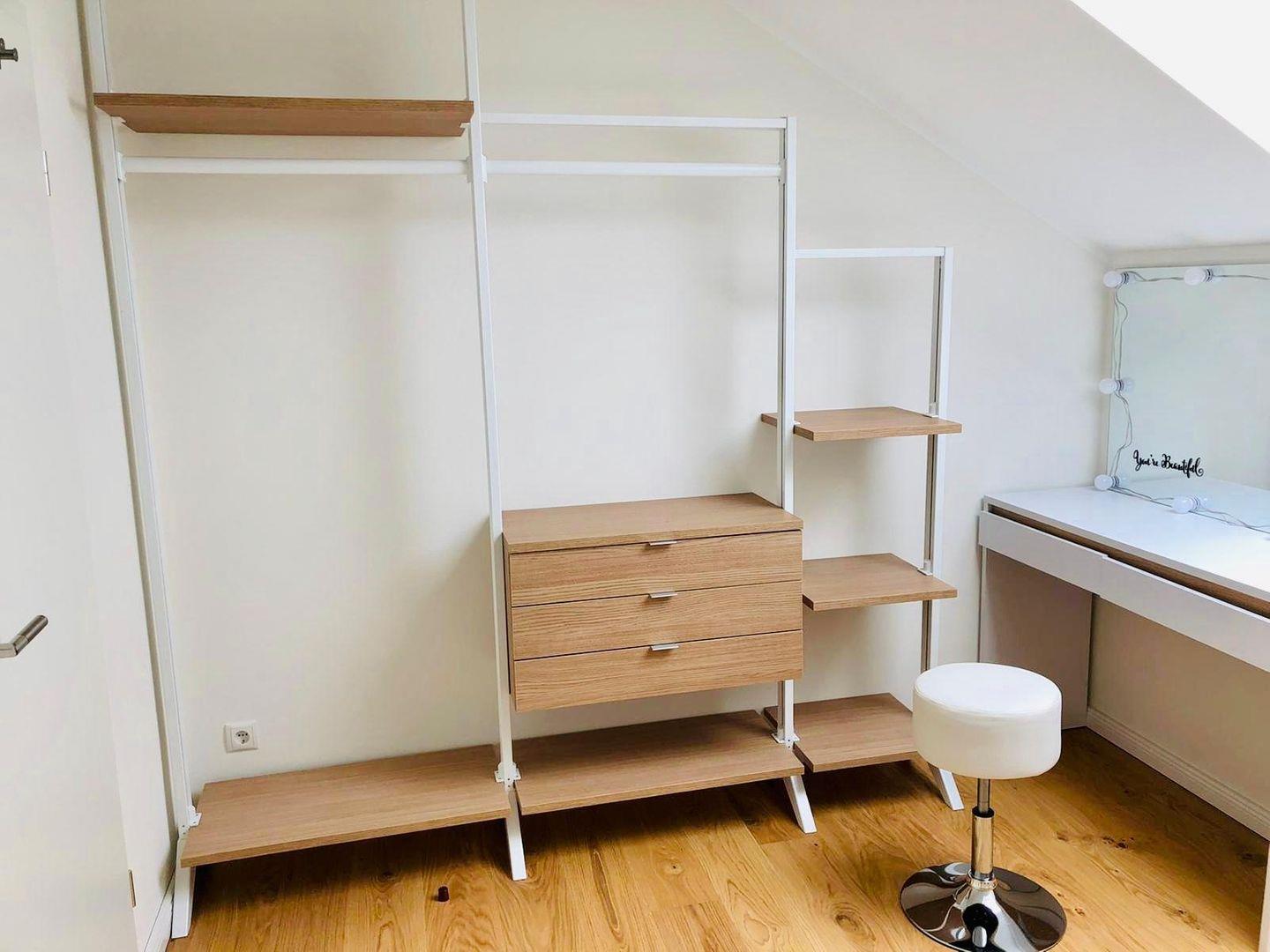 Jedes der zwei Schlafzimmer ist mit sehr hochwertigen Betten und einem offenen Kleiderschrank ausgestattet. Darüber hinaus macht der Hollywood-Style-Schminktisch Ihre Morgenroutine zum Vergnügen.