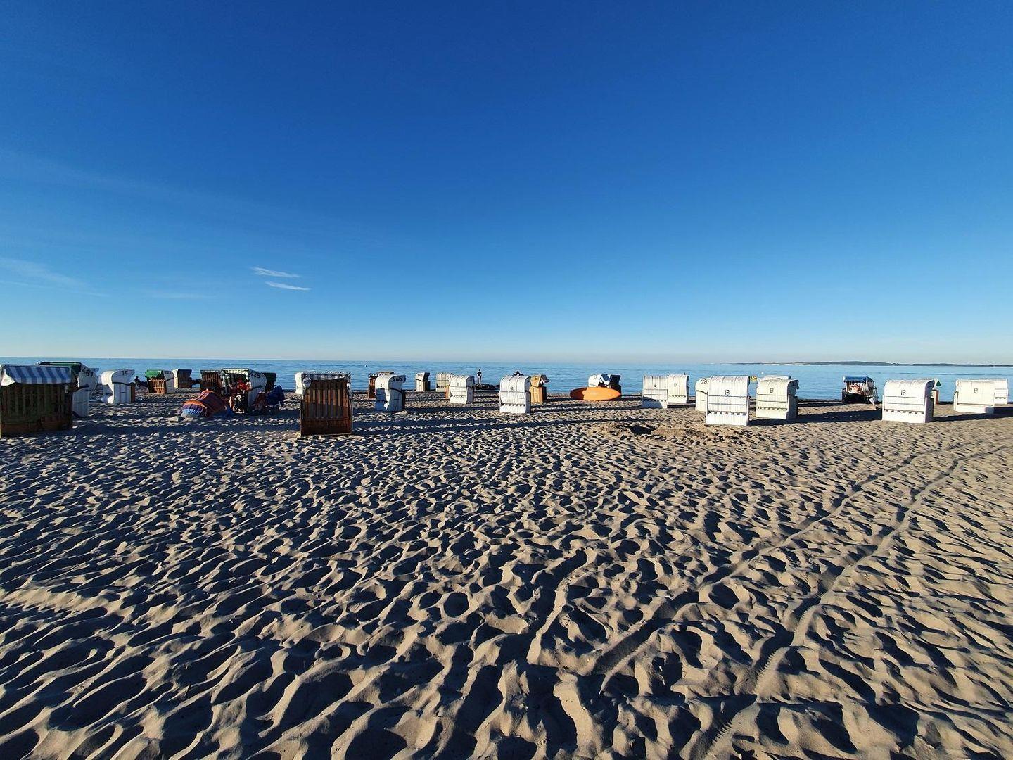 Es sind nur 50 Meter direkt bis zum Strand. Ein individueller Strandkorb ist anmietbar. Wollen Sie den Tag auf dem 7,50 m² Balkon genießen, stehen Liegestühle und eine Liege für Sie bereit. Gastronomie, die Strandpromenade und Geschäfte für die Besorgungen des täglichen Bedarfs sind fußläufig erreichbar.