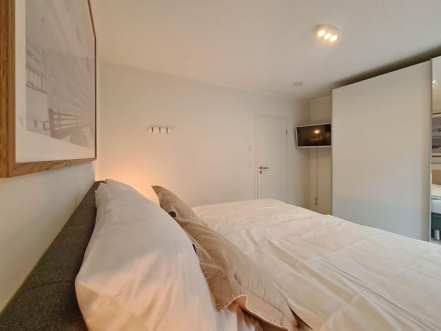 Die großen sowie bodentiefen Fenster im Schlafzimmer ermöglichen viel Tageslicht. Durchaus besteht die Möglichkeit die Fenster zu verdunkeln. Das Boxspringbett (180x200) bietet neben dem großen und geräumigen Kleiderschrank viel Komfort.