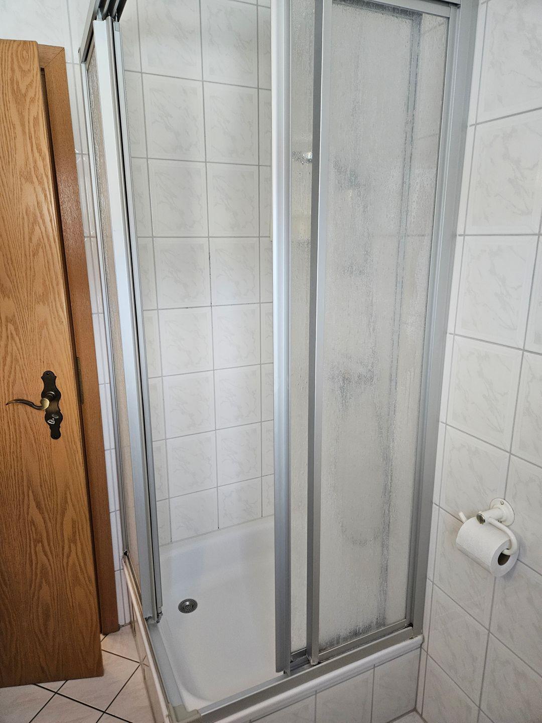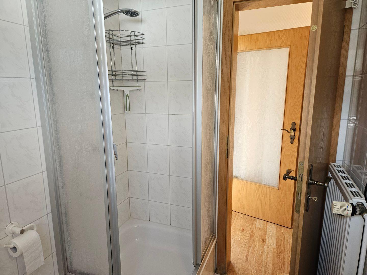 Auf der linken Seite des Flures direkt folgen 2 Badezimmer. In beiden Badezimmern haben Sie auch wie in allen anderen Räumen der Wohnung Tageslicht, da auch diese ein Fenster haben. Natürlich befinden sich in beiden Badezimmern auch ein Waschbecken, ein WC, sowie eine Duschkabine. Unmittelbar unter dem Spiegel befindet sich eine Ablage für Hygieneartikel.