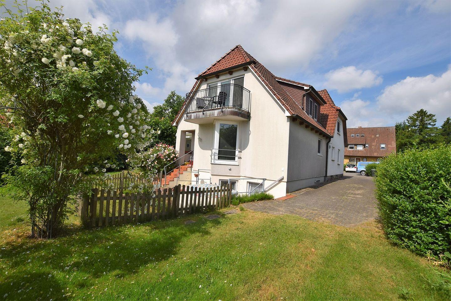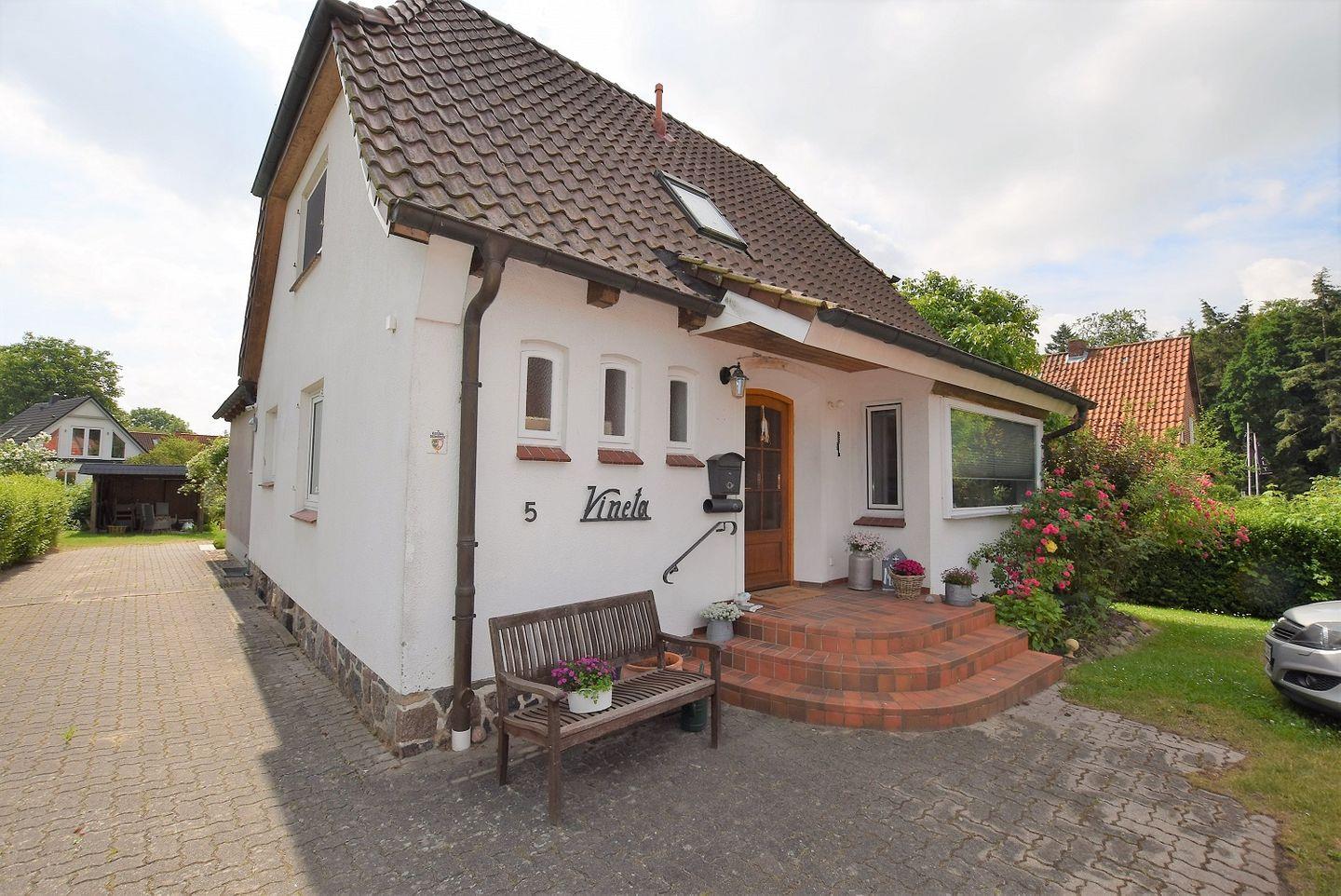 Entlang einer schön mit Holz verkleideten Treppe steigt man hinauf in das Obergeschoss des Hauses Vineta. Alle Zimmer verteilen sich rechts und links entlang eines längeren Flures. Durch viele und großzügige Fenster, vor allem im Wohnbereich werden Sie mit Tageslicht begrüßt und fühlen sich gleich herzlich Willkommen.