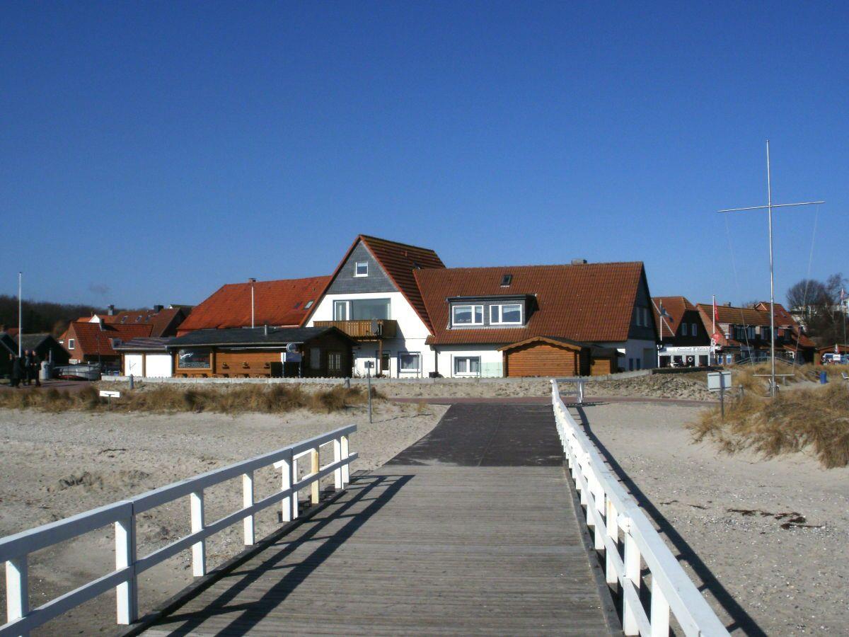 Bei Sonnenschein haben Sie den Strand direkt vor der Tür. Jede der drei im EG liegenden Ferienwohnungen verfügt über ihren eigenen Bereich inklusive Terrassenmöbel auf der zum Süden und Strand hin gelegenen Gemeinschaftsterrasse. Hier können Sie die Seele baumeln lassen oder sich im Garten ein Plätzchen suchen, um dem Treiben am Strand zu zusehen. Bei guter Sicht können Sie sogar bis zur Insel Fehmarn blicken.