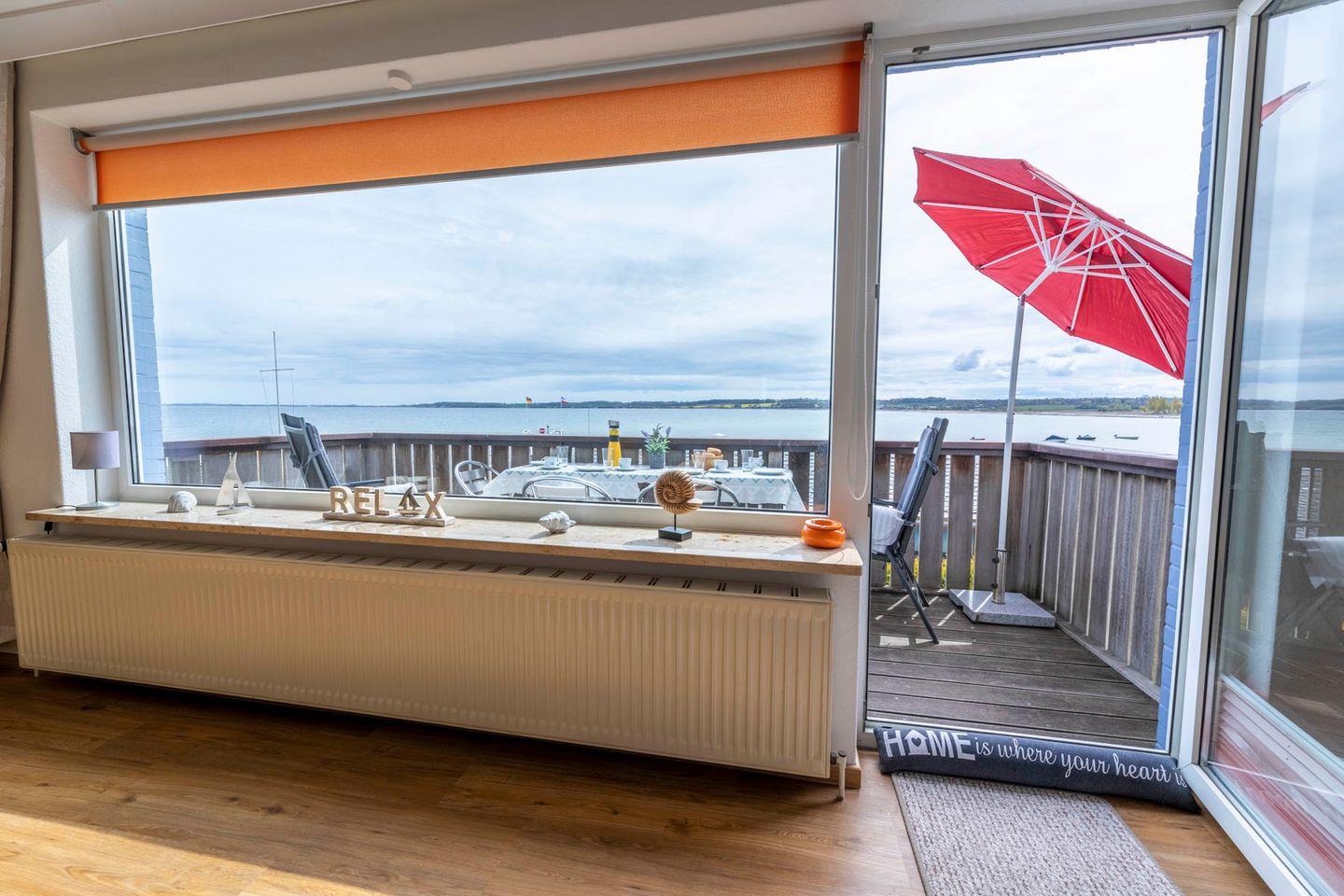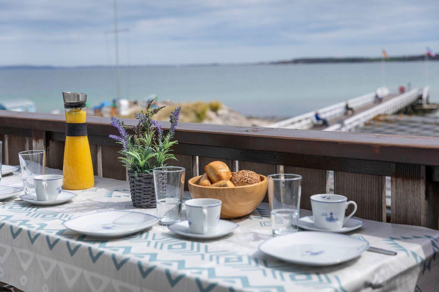 Bei Sonnenschein lockt der Süd-Balkon vorm Wohnzimmer. Von hier haben Sie den besten Überblick auf das Strandleben und können die Seele baumeln lassen. Bei guter Sicht können Sie sogar bis zur Insel Fehmarn blicken. Wenn Sonne und Strand einmal nicht locken, haben wir für kleine Strandräuber einen Vorrat an Brettspielen und Kinder- und Jugendbüchern in der Wohnung, sodass keine Langeweile aufkommt.