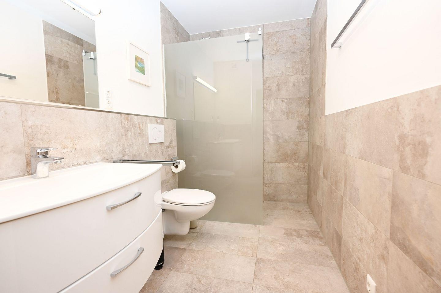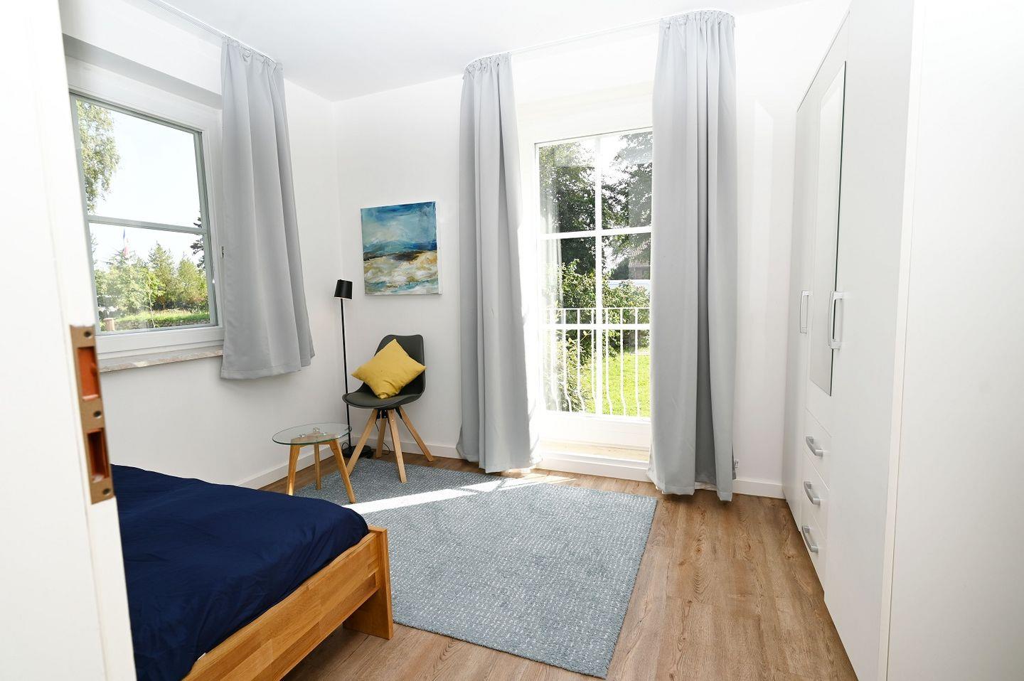 Die 3-Zimmer Ferienwohnung ist für 4 Personen ausgelegt. Sie besteht aus einem offenen Wohn- Essbereich mit integrierter Küche, welche z. B. über Geschirrspülmaschine, Dolce-Gusto-Maschine (Kaffee, Espresso, Kakao) und weiteres verfügt. Der Wohnbereich lädt durch die gemütliche Sofaecke auch an Abendstunden zum Verweilen ein. In beiden Schlafzimmern finden Sie jeweils ein Doppelbett mit geräumigem Kleiderschrank und Nachttischlampen vor, die Fenster können verdunkelt werden. Das Badezimmer mit einem großen Spiegel, Föhn, WC und ebenerdiger Regendusche runden die Ausstattung ab. In den großen Schubladen unter dem Waschbecken finden Sie viel Stauraum für Kosmetik- und Pflegeprodukte.