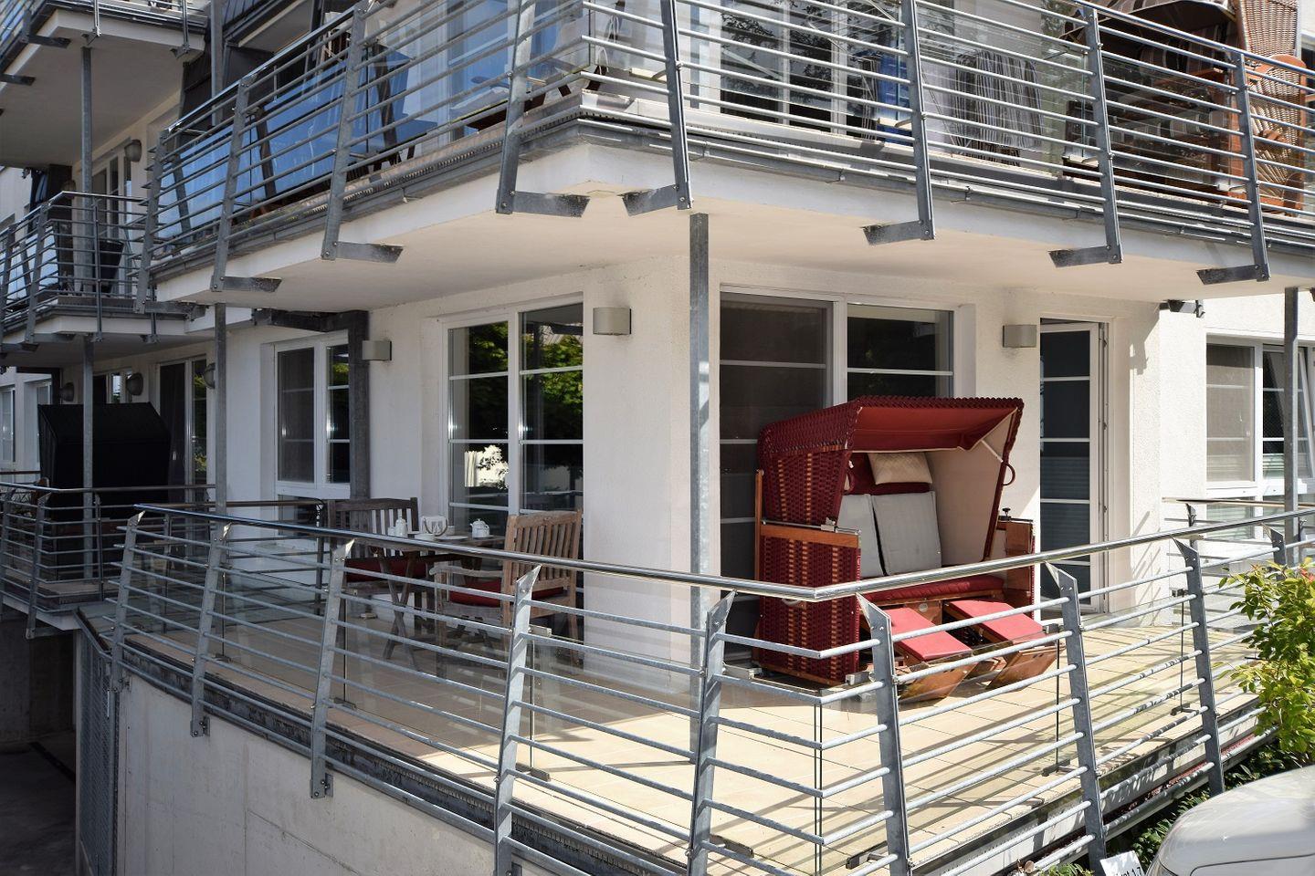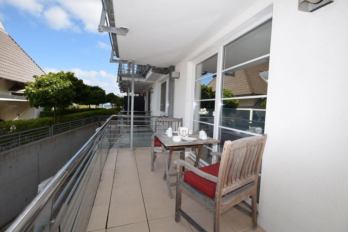 Moderne Ferienwohnung mit Eckbalkon, nur 10 m vom feinen Hohwachter Sandstrand entfernt.