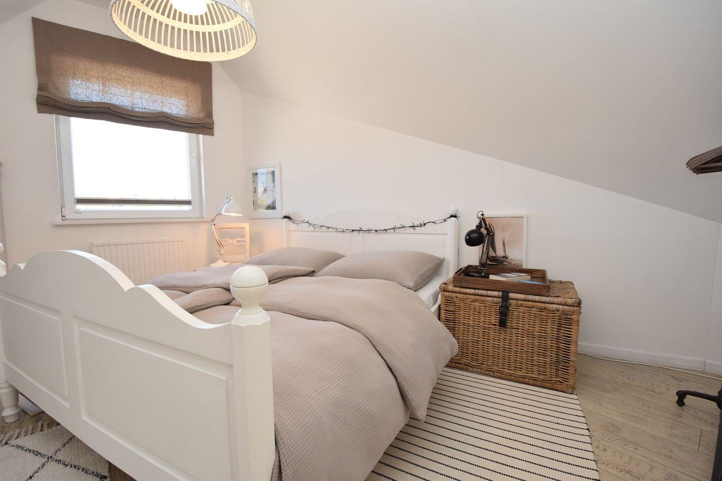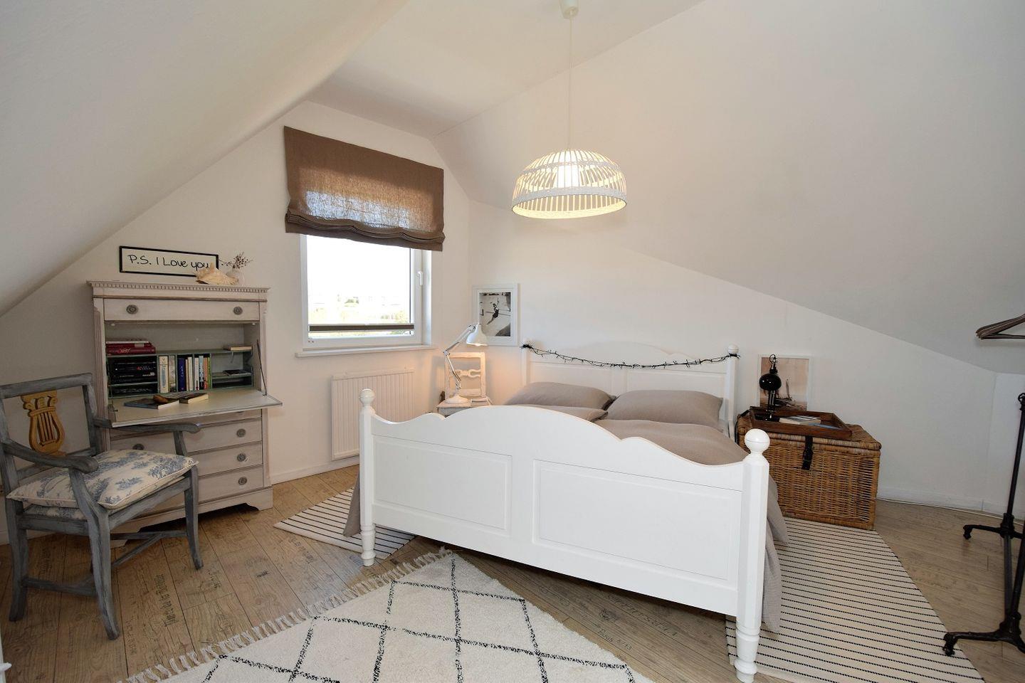 Über eine Treppe gelangen Sie in die Galerie des Hauses, wo sich das große und gemütliche Schlafzimmer befindet. Dieses lädt zum Entspannen und zu traumhaften Nächten ein.